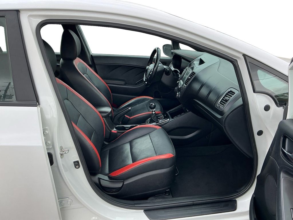 2018 Kia Forte5 SX Snow White Pearl SX FWD 6-Speed Manual 1.6L I4 DOHC 18" x 7.5J Alloy Wheels, 4-Wheel Disc Brakes, 6 Speakers, ABS brakes, Air Conditioning, Alloy wheels, AM/FM radio: SiriusXM, Apple CarPlay & Android Auto, Auto-dimming Rear-View mirror, Automatic temperature control, Brake assist, Bumpers: body-color, Cargo Mat, Cargo Net, Carpeted Floor Mats, Delay-off headlights, Driver door bin, Driver vanity mirror, Dual front impact airbags, Dual front side impact airbags, Electronic Stability Control, Exterior Parking Camera Rear, Front anti-roll bar, Front Bucket Seats, Front Center Armrest, Front dual zone A/C, Front fog lights, Front reading lights, Front wheel independent suspension, Fully automatic headlights, Heated & Ventilated Front Bucket Seats, Heated door mirrors, Heated front seats, High intensity discharge headlights: Xenon, Illuminated entry, Leather Seat Trim, Leather Shift Knob, Leather steering wheel, Low tire pressure warning, Memory seat, Navigation System, Occupant sensing airbag, Outside temperature display, Overhead airbag, Overhead console, Panic alarm, Passenger door bin, Passenger vanity mirror, Power door mirrors, Power driver seat, Power moonroof, Power steering, Power windows, Radio: UVO eServices AM/FM/MP3 w/Premium Nav, Rear seat center armrest, Rear window defroster, Rear window wiper, Remote keyless entry, Security system, Speed control, Split folding rear seat, Spoiler, Sport steering wheel, Steering wheel mounted audio controls, Tachometer, Telescoping steering wheel, Tilt steering wheel, Traction control, Trip computer, Turn signal indicator mirrors, Variably intermittent wipers, Ventilated front seats.