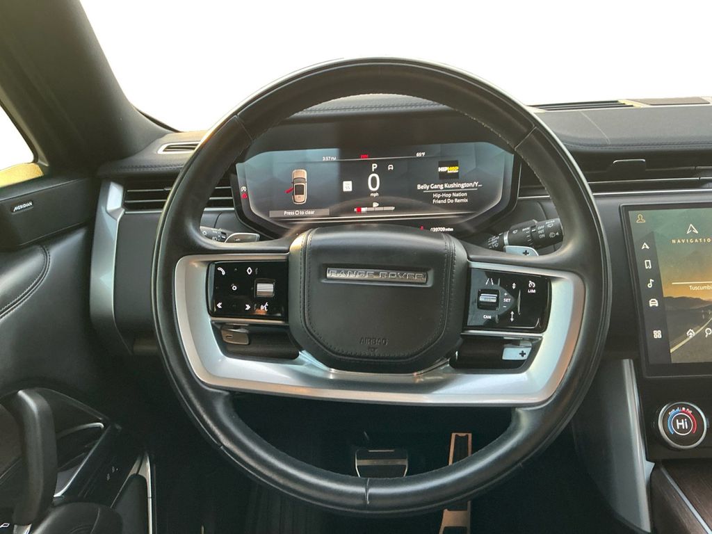 2023 Land Rover Range Rover SE LWB Black SE LWB AWD ZF 8-Speed Automatic 4.4L V8 Twin Turbocharged Leather, 15 Speakers, 20-Way Heated Electric Front Bucket Seats, 3.3 Axle Ratio, 3rd row seats: split-bench, 4-Wheel Disc Brakes, ABS brakes, Adaptive suspension, Air Conditioning, Alloy wheels, AM/FM radio: SiriusXM w/360L, Anti-whiplash front head restraints, Auto High-beam Headlights, Auto tilt-away steering wheel, Auto-dimming door mirrors, Auto-dimming Rear-View mirror, Auto-leveling suspension, Automatic temperature control, Brake assist, Bumpers: body-color, Compass, Delay-off headlights, Driver door bin, Driver vanity mirror, Driver's Seat Mounted Armrest, Dual front impact airbags, Dual front side impact airbags, Electronic Stability Control, Emergency communication system, Exterior Parking Camera Rear, Four wheel independent suspension, Front anti-roll bar, Front Bucket Seats, Front Center Armrest w/Storage, Front dual zone A/C, Front fog lights, Front reading lights, Fully automatic headlights, Garage door transmitter: HomeLink, Genuine wood console insert, Genuine wood door panel insert, Head restraints memory, Headlight cleaning, Heated door mirrors, Heated front seats, Heated rear seats, Illuminated entry, Leather Shift Knob, Low tire pressure warning, Memory seat, Navigation system: Pivi Pro Connected Navigation, Occupant sensing airbag, Outside temperature display, Overhead airbag, Overhead console, Panic alarm, Passenger door bin, Passenger seat mounted armrest, Passenger vanity mirror, Perforated Windsor Leather Seat Trim, Power adjustable front head restraints, Power door mirrors, Power driver seat, Power moonroof, Power passenger seat, Power steering, Power windows, Premium audio system: Meridian, Radio data system, Radio: Meridian Sound System, Rain sensing wipers, Rear air conditioning, Rear anti-roll bar, Rear dual zone A/C, Rear fog lights, Rear reading lights, Rear seat center armrest, Rear window defroster, Rear window wiper, Remote keyless entry, Security system, Speed control, Speed-sensing steering, Speed-Sensitive Wipers, Split folding rear seat, Steering wheel memory, Steering wheel mounted A/C controls, Steering wheel mounted audio controls, Tachometer, Telescoping steering wheel, Tilt steering wheel, Traction control, Trip computer, Turn signal indicator mirrors, Variably intermittent wipers, Weather band radio, Wheels: 21" Diamond Turned w/Gloss Dk Gry Contrast, Wireless Apple CarPlay/Wireless Android Auto, Leather.