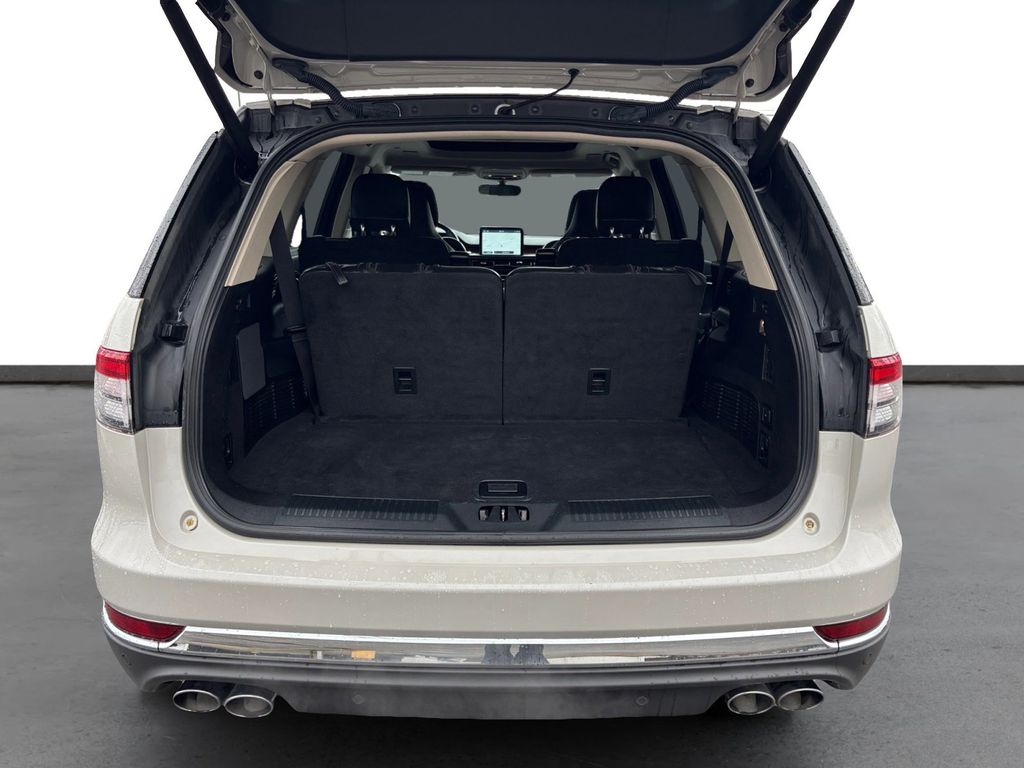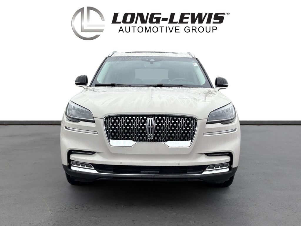 2020 Lincoln Aviator Reserve Ceramic Pearl Metallic Tri-Coat Reserve AWD 10-Speed Automatic 3.0L V6 14 Speakers, 3.58 Axle Ratio, 30-Way Perfect Position Seats w/Active Motion, 3rd row seats: split-bench, 4-Wheel Disc Brakes, ABS brakes, Active Park Assist Plus, Adaptive Cruise Control w/Traffic Jam Assist, Adaptive suspension, Air Conditioning, Alloy wheels, AM/FM radio: SiriusXM, Audio memory, Auto High-beam Headlights, Auto-dimming door mirrors, Auto-dimming Rear-View mirror, Automatic temperature control, Brake assist, Bumpers: body-color, Compass, Delay-off headlights, Driver door bin, Driver vanity mirror, Dual front impact airbags, Dual front side impact airbags, Electronic Stability Control, Elements Package Plus, Emergency communication system: SYNC 3 911 Assist, Equipment Group 201A, Evasive Steering Assist, Four wheel independent suspension, Front anti-roll bar, Front Bucket Seats, Front Center Armrest, Front dual zone A/C, Front fog lights, Front reading lights, Full Rear Console, Fully automatic headlights, Garage door transmitter, Heated door mirrors, Heated front seats, Heated Steering Wheel, Heated VisioBlade Wipers, Heated/Ventilated 2nd Row Outboard Seats, Heated/Ventilated Driver & Passenger Seats, HVAC memory, Illuminated entry, Knee airbag, Lincoln Co-Pilot360 Plus, Low tire pressure warning, Luxury Package, Memory seat, Navigation System, Occupant sensing airbag, Outside temperature display, Overhead airbag, Overhead console, Panic alarm, Panoramic Vista Roof w/Power Shade, Passenger door bin, Passenger vanity mirror, Power door mirrors, Power driver seat, Power Liftgate, Power passenger seat, Power steering, Power windows, Premium Leather Enhanced Micro-Perforated Seats, Radio data system, Radio: Revel AM/FM Audio System w/14 Speakers, Radio: Revel Ultima 3D Audio System w/28 Speakers, Rain sensing wipers, Rear air conditioning, Rear anti-roll bar, Rear audio controls, Rear Door Sunshades, Rear dual zone A/C, Rear reading lights, Rear window defroster, Rear window wiper, Remote keyless entry, Reverse Brake Assist, Security system, SiriusXM Radio, Speed control, Speed-Sensitive Wipers, Split folding rear seat, Spoiler, Steering wheel memory, Steering wheel mounted A/C controls, Steering wheel mounted audio controls, SYNC 3 Communication & Entertainment System, Tachometer, Telescoping steering wheel, Tilt steering wheel, Traction control, Trip computer, Turn signal indicator mirrors, Variably intermittent wipers, Ventilated front seats, Wheels: 20" Bright Machined Aluminum.