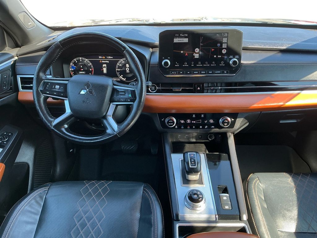 2022 Mitsubishi Outlander SEL Deep Bronze Metallic SEL FWD CVT 2.5L 4-Cylinder DOHC 3rd row seats: split-bench, 4-Wheel Disc Brakes, 6 Speakers, ABS brakes, Air Conditioning, Alloy wheels, AM/FM radio: SiriusXM, Android Auto & Apple CarPlay, Auto High-beam Headlights, Auto-dimming Rear-View mirror, Automatic temperature control, Axle Ratio: 5.694, Brake assist, Bumpers: body-color, Driver door bin, Driver vanity mirror, Dual front impact airbags, Dual front side impact airbags, Electronic Stability Control, Emergency communication system: Mitsubishi Connect w/ 24-month trial, Four wheel independent suspension, Front anti-roll bar, Front Bucket Seats, Front Center Armrest w/Storage, Front dual zone A/C, Front fog lights, Front reading lights, Fully automatic headlights, Heated door mirrors, Heated Front Bucket Seats, Heated front seats, Illuminated entry, Knee airbag, Leather Seat Trim, Leather Shift Knob, Leather steering wheel, Low tire pressure warning, Memory seat, Navigation system: Powered by TOMTOM, Occupant sensing airbag, Outside temperature display, Overhead airbag, Overhead console, Panic alarm, Passenger door bin, Passenger vanity mirror, Power door mirrors, Power driver seat, Power Liftgate, Power passenger seat, Power steering, Power windows, Radio data system, Radio: AM/FM 9.0" Navigation w/Smartphone Link, Rain sensing wipers, Rear air conditioning, Rear anti-roll bar, Rear seat center armrest, Rear side impact airbag, Rear window defroster, Rear window wiper, Reclining 3rd row seat, Remote keyless entry, Roof rack: rails only, Security system, Speed control, Speed-Sensitive Wipers, Split folding rear seat, Spoiler, Steering wheel mounted audio controls, Tachometer, Telescoping steering wheel, Tilt steering wheel, Traction control, Trip computer, Turn signal indicator mirrors, Variably intermittent wipers, Wheels: 20" x 8J Two-Tone Alloy.