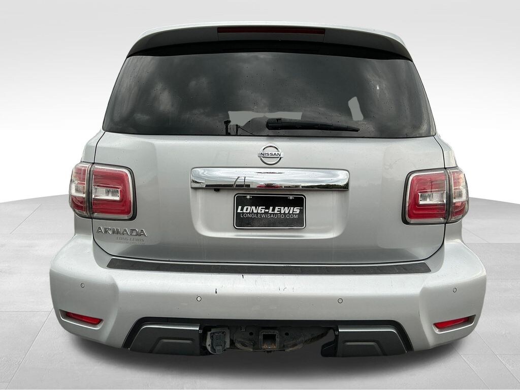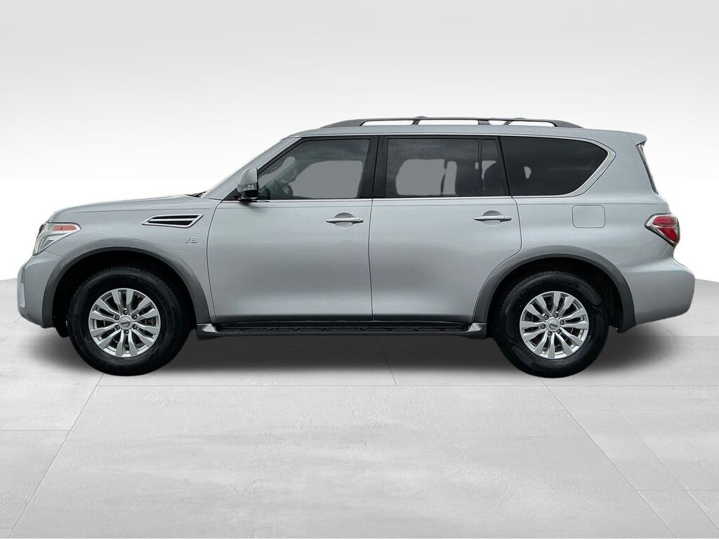 2019 Nissan Armada SV Brilliant Silver Metallic SV RWD 7-Speed Automatic 5.6L V8 DOHC 32V Endurance 13 Speakers, 18" Alloy Wheels, 2.937 Axle Ratio, 2nd & 3rd Row Carpeted Mats, 3rd row seats: split-bench, 4-Wheel Disc Brakes, ABS brakes, Air Conditioning, Alloy wheels, AM/FM radio: SiriusXM, Anti-whiplash front head restraints, Auto-Dimming Interior Rear-View Mirror, Auto-leveling suspension, Automatic temperature control, Brake assist, Bumpers: body-color, CD player, Cloth Seat Trim, Cross Bars, Delay-off headlights, Driver door bin, Driver Package, Driver vanity mirror, Dual front impact airbags, Dual front side impact airbags, Electronic Stability Control, Emergency communication system: NissanConnect Services, Four wheel independent suspension, Front anti-roll bar, Front Bucket Seats, Front Center Armrest, Front dual zone A/C, Front Fog Lights, Front reading lights, Fully automatic headlights, Heated Front Bucket Seats, Heated front seats, Illuminated entry, Illuminated Kick Plates, Leather Shift Knob, Low tire pressure warning, Navigation System, Occupant sensing airbag, Outside temperature display, Overhead airbag, Overhead console, Panic alarm, Passenger door bin, Passenger vanity mirror, Power 60/40 3rd Row Seat, Power door mirrors, Power driver seat, Power Lift Gate, Power passenger seat, Power steering, Power windows, Radio data system, Radio: AM/FM/SXM/CD/MP3/HD, Rear air conditioning, Rear anti-roll bar, Rear reading lights, Rear seat center armrest, Rear window defroster, Rear window wiper, Reclining 3rd row seat, Remote keyless entry, Roof rack: rails only, Security system, Speed control, Speed-sensing steering, Speed-Sensitive Wipers, Split folding rear seat, Spoiler, Steering wheel mounted audio controls, Tachometer, Telescoping steering wheel, Tilt steering wheel, Traction control, Trailer Towing Harness, Trip computer, Turn signal indicator mirrors, Variably intermittent wipers, Voltmeter.