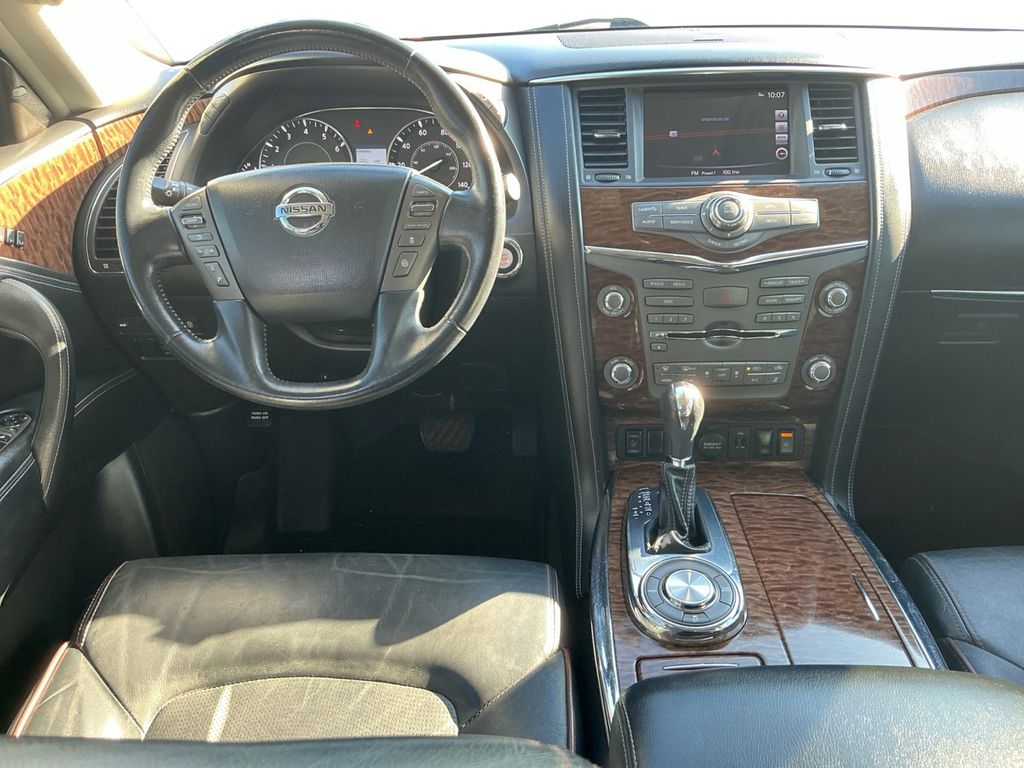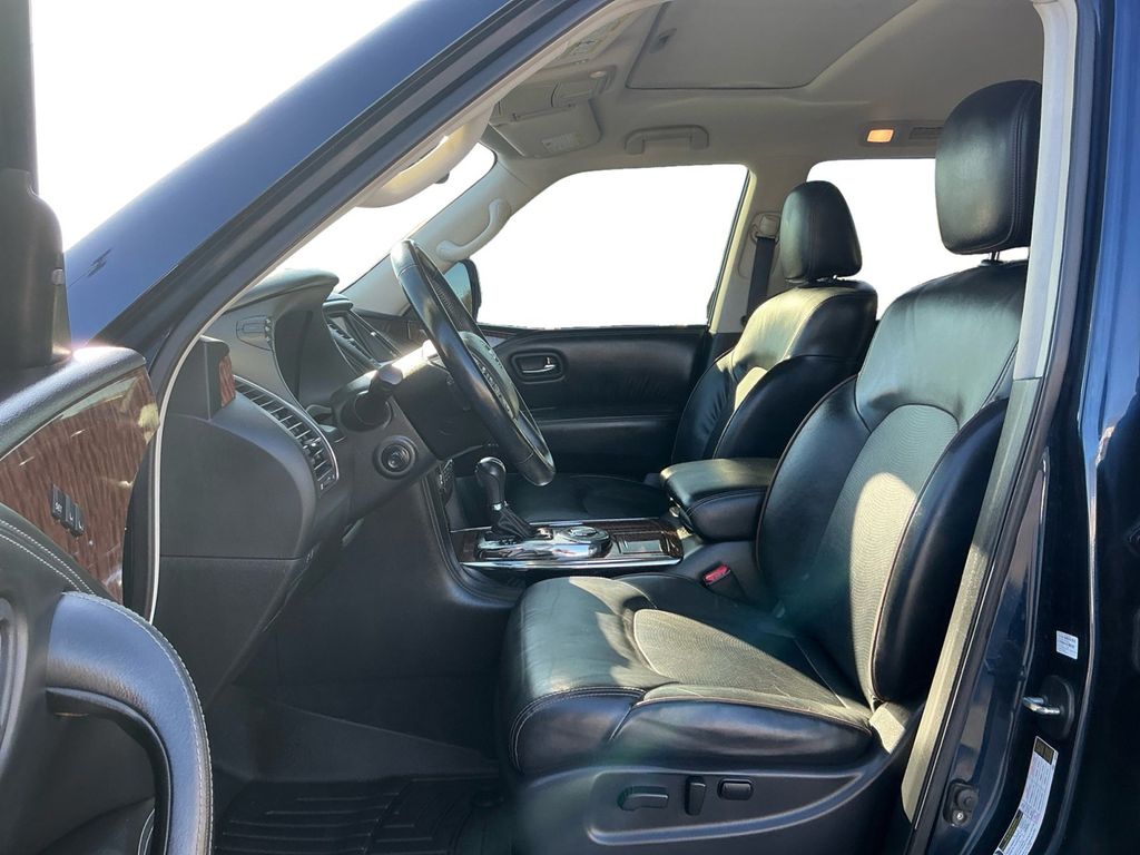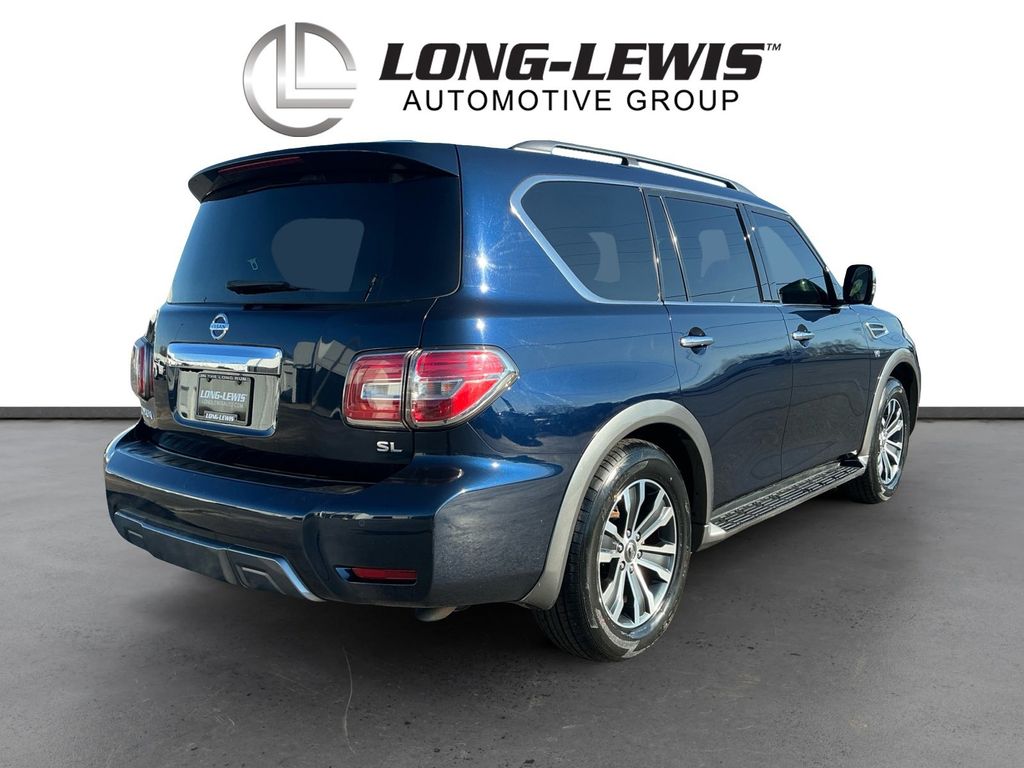2020 Nissan Armada SL Hermosa Blue Pearl SL RWD 7-Speed Automatic 5.6L V8 13 Speakers, 20" Painted Alloy Wheels, 3rd Row Carpeted Floor Mats - Bench Seat, 3rd row seats: split-bench, 4-Wheel Disc Brakes, ABS brakes, Air Conditioning, Alloy wheels, AM/FM radio: SiriusXM, Anti-whiplash front head restraints, Auto tilt-away steering wheel, Auto-dimming door mirrors, Auto-dimming Rear-View mirror, Auto-leveling suspension, Automatic temperature control, Axle Ratio: 2.94, Blind Spot Warning, Brake assist, Bumpers: body-color, CD player, Delay-off headlights, Driver door bin, Driver vanity mirror, Dual front impact airbags, Dual front side impact airbags, DVD-Audio, Electronic Stability Control, Emergency communication system: NissanConnect Services, Exterior Parking Camera Rear, Four wheel independent suspension, Front anti-roll bar, Front Bucket Seats, Front Center Armrest, Front dual zone A/C, Front fog lights, Front reading lights, Fully automatic headlights, Garage door transmitter: HomeLink, Heated door mirrors, Heated Front Bucket Seats w/Power Driver's Memory, Heated front seats, Illuminated entry, Intelligent Back-Up Intervention (I-BI), Intelligent Distance Control (I-DC), Leather Shift Knob, Leather-Appointed Seat Trim, Low tire pressure warning, Memory seat, Navigation System, Occupant sensing airbag, Outside temperature display, Overhead airbag, Overhead console, Panic alarm, Passenger door bin, Passenger vanity mirror, Power door mirrors, Power driver seat, Power Liftgate, Power passenger seat, Power Sliding Moonroof w/Front Tilt & Rear Slide, Power steering, Power windows, Premium Package, Radio data system, Radio: AM/FM/SXM/CD/MP3/HD, Rain sensing wipers, Rear air conditioning, Rear anti-roll bar, Rear Cross Traffic Alert (RCTA), Rear reading lights, Rear seat center armrest, Rear window defroster, Rear window wiper, Reclining 3rd row seat, Remote keyless entry, Security system, Speed control, Speed-sensing steering, Speed-Sensitive Wipers, Split folding rear seat, Spoiler, Steering wheel memory, Steering wheel mounted audio controls, Tachometer, Telescoping steering wheel, Tilt steering wheel, Traction control, Trip computer, Turn signal indicator mirrors, Variably intermittent wipers, Voltmeter.