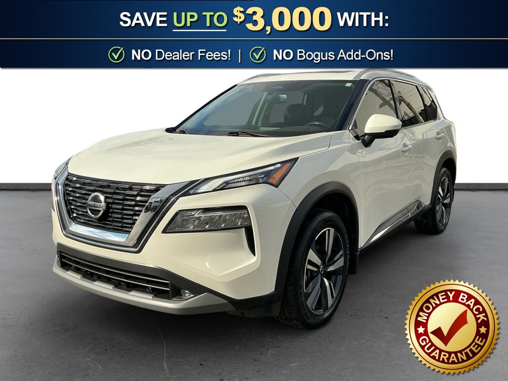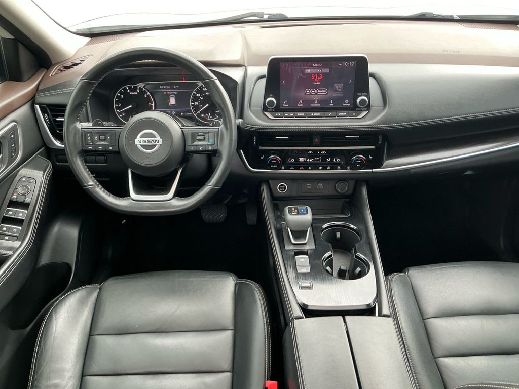 2021 Nissan Rogue SL Pearl White Tricoat SL FWD CVT with Xtronic 2.5L I4 DOHC 16V 19" Aluminum Alloy Wheels, 4-Wheel Disc Brakes, 5.604 Axle Ratio, 6 Speakers, ABS brakes, Air Conditioning, Alloy wheels, AM/FM Radio, AM/FM radio, Auto High-beam Headlights, Auto-dimming Rear-View mirror, Automatic temperature control, Black Splash Guards (Set of 4), Brake assist, Bumpers: body-color, Chrome Rear Bumper Protector, Delay-off headlights, Driver door bin, Driver vanity mirror, Dual front impact airbags, Dual front side impact airbags, Electronic Stability Control, Emergency communication system: NissanConnect Services, Exterior Parking Camera Rear, First Aid Kit, Floor Mats w/2-Piece Cargo Area Protector, Four wheel independent suspension, Front anti-roll bar, Front Bucket Seats, Front Center Armrest, Front dual zone A/C, Front fog lights, Front reading lights, Fully automatic headlights, Heated door mirrors, Heated Front Bucket Seats, Heated front seats, Heated steering wheel, Illuminated entry, Knee airbag, Leather steering wheel, Leather-Appointed Seat Trim, Low tire pressure warning, Memory seat, NissanConnect featuring Apple CarPlay and Android Auto, Occupant sensing airbag, Outside temperature display, Overhead airbag, Overhead console, Panic alarm, Passenger door bin, Passenger vanity mirror, Power door mirrors, Power driver seat, Power Liftgate, Power moonroof, Power passenger seat, Power steering, Power windows, Radio data system, Rear air conditioning, Rear anti-roll bar, Rear Parking Sensors, Rear seat center armrest, Rear side impact airbag, Rear window defroster, Rear window wiper, Remote keyless entry, Roof rack: rails only, Security system, Speed control, Speed-Sensitive Wipers, Split folding rear seat, Spoiler, Steering wheel mounted audio controls, Tachometer, Telescoping steering wheel, Tilt steering wheel, Traction control, Trip computer, Turn signal indicator mirrors, Variably intermittent wipers.