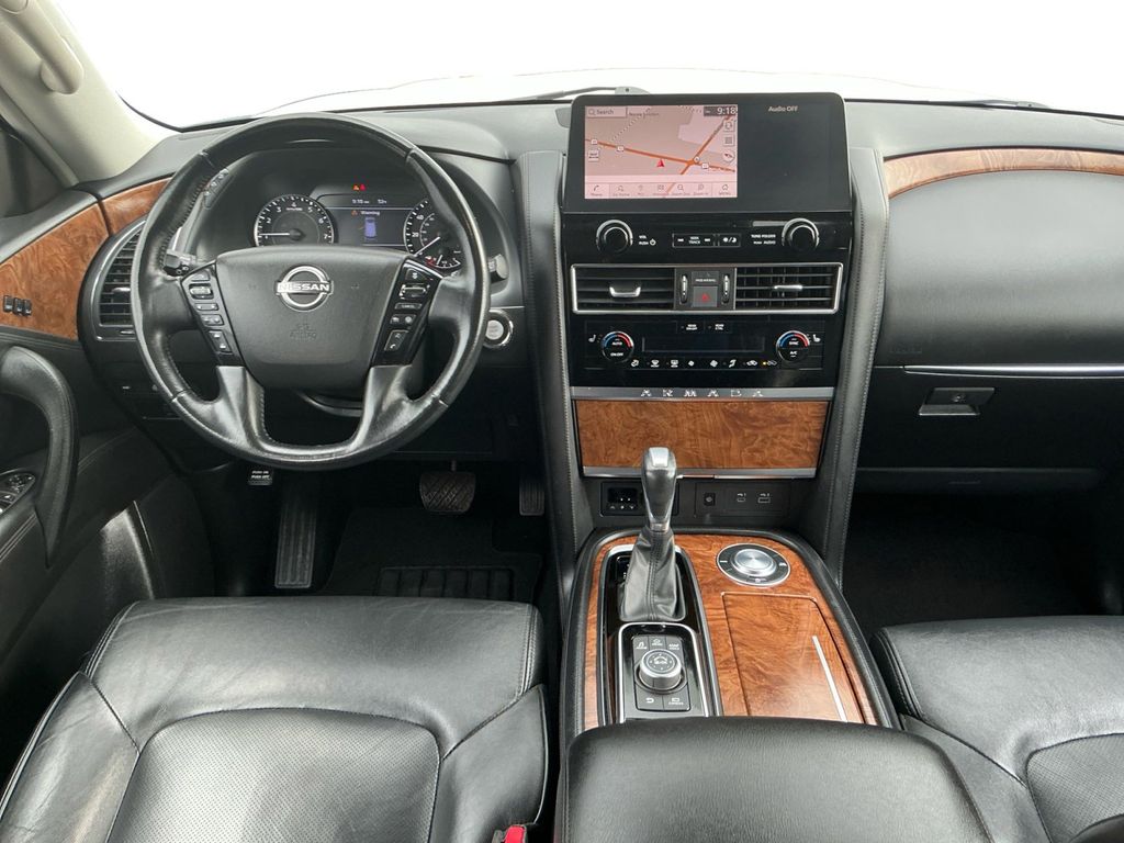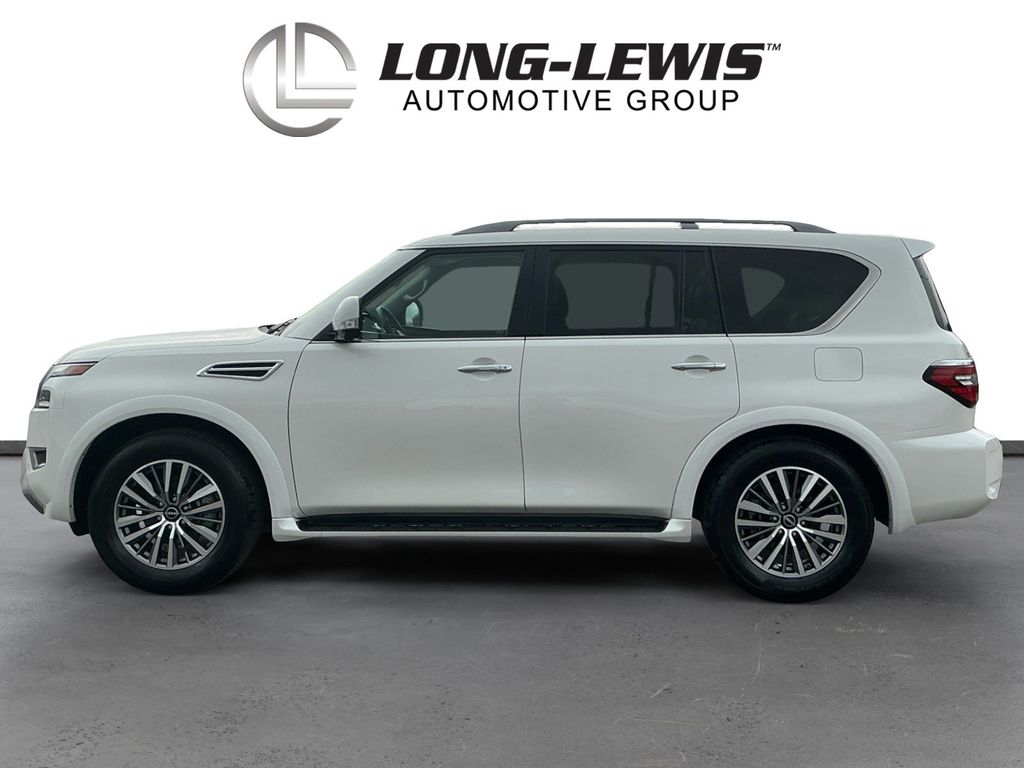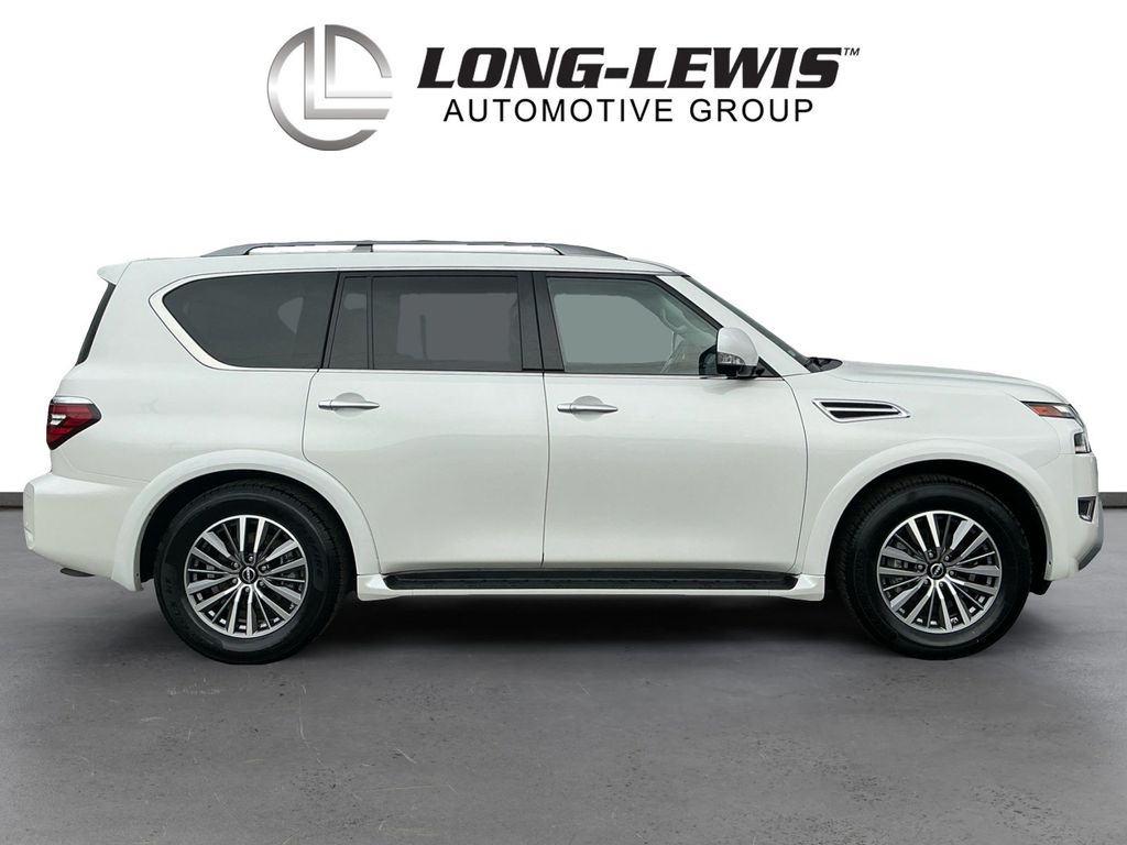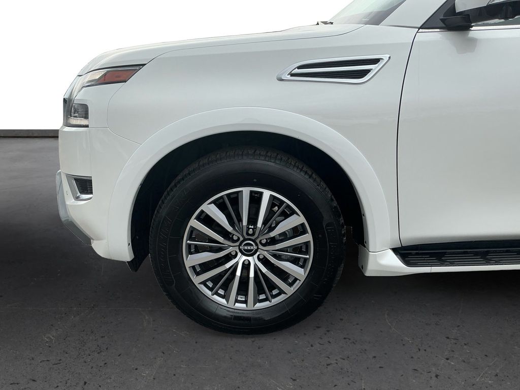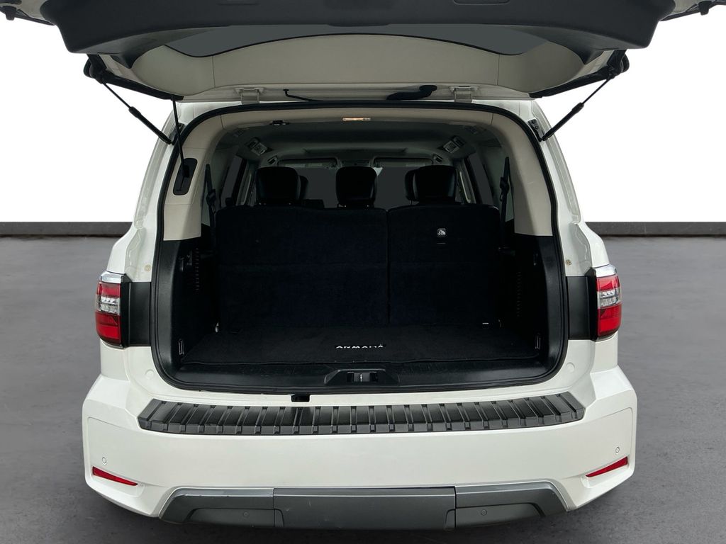 2023 Nissan Armada SL Aspen White Tricoat SL RWD 7-Speed Automatic 5.6L V8 DOHC 32V LEV3-ULEV125 400hp 13 Speakers, 2.94 Axle Ratio, 3rd Row Carpeted Floor Mats - Bench Seat, 3rd row seats: split-bench, 4-Wheel Disc Brakes, ABS brakes, Air Conditioning, Alloy wheels, AM/FM radio: SiriusXM, Anti-whiplash front head restraints, Auto High-beam Headlights, Auto tilt-away steering wheel, Auto-dimming door mirrors, Auto-dimming Rear-View mirror, Auto-leveling suspension, Automatic temperature control, Bose 13-Speaker Premium Audio System, Brake assist, Bumpers: body-color, Delay-off headlights, Driver door bin, Driver vanity mirror, Dual front impact airbags, Dual front side impact airbags, Electronic Stability Control, Emergency communication system: NissanConnect Services, Exterior Parking Camera Rear, Four wheel independent suspension, Front anti-roll bar, Front Bucket Seats, Front Center Armrest, Front dual zone A/C, Front fog lights, Front reading lights, Fully automatic headlights, Garage door transmitter: HomeLink, Heated door mirrors, Heated Front Bucket Seats, Heated front seats, Heated steering wheel, Illuminated entry, Knee airbag, Leather Shift Knob, Leather-Appointed Seat Trim, Low tire pressure warning, Memory seat, Navigation System, NissanConnect featuring Apple CarPlay and Android Auto, Occupant sensing airbag, Outside temperature display, Overhead airbag, Overhead console, Panic alarm, Passenger door bin, Passenger vanity mirror, Power door mirrors, Power driver seat, Power Liftgate, Power moonroof, Power passenger seat, Power steering, Power windows, Premium audio system: Bose, Radio: NissanConnect w/SiriusXM, Rear air conditioning, Rear anti-roll bar, Rear reading lights, Rear seat center armrest, Rear window defroster, Rear window wiper, Reclining 3rd row seat, Remote keyless entry, Security system, Speed control, Speed-sensing steering, Speed-Sensitive Wipers, Split folding rear seat, Spoiler, Steering wheel memory, Steering wheel mounted audio controls, Tachometer, Telescoping steering wheel, Tilt steering wheel, Traction control, Trip computer, Turn signal indicator mirrors, Variably intermittent wipers, Voltmeter, Wheels: 20" x 8J Painted Alloy.
