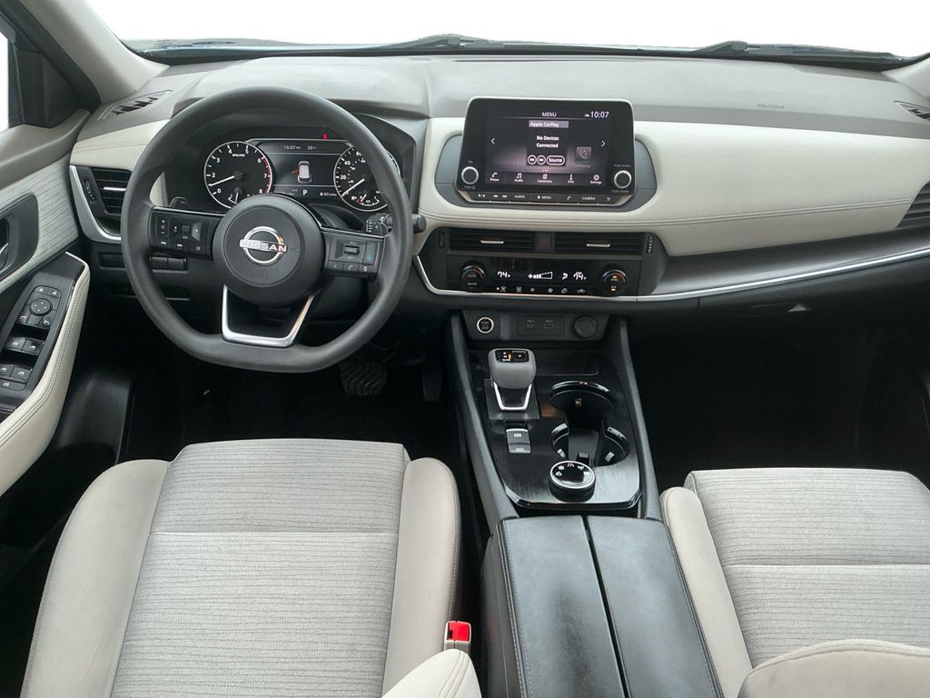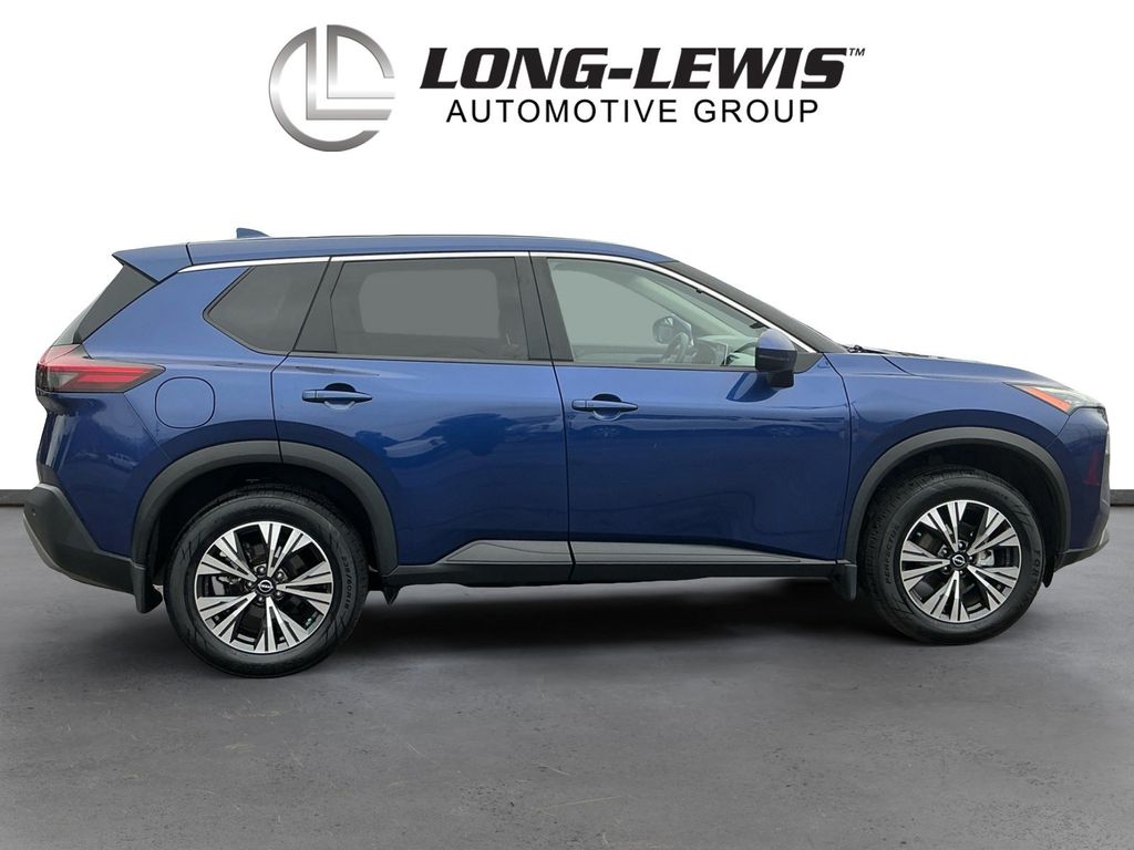 2023 Nissan Rogue SV Caspian Blue Metallic SV AWD CVT with Xtronic 1.5L I3 Turbocharged DOHC 12V LEV3-ULEV50 201hp AWD, 18" Aluminum Alloy Wheels, 4-Wheel Disc Brakes, 5.604 Axle Ratio, 6 Speakers, ABS brakes, Air Conditioning, Alloy wheels, AM/FM Radio, AM/FM radio: SiriusXM, Auto High-beam Headlights, Automatic temperature control, Black Splash Guards (Set of 4), Brake assist, Bumpers: body-color, Chrome Rear Bumper Protector, Cloth Seat Trim, Delay-off headlights, Driver door bin, Driver vanity mirror, Dual front impact airbags, Dual front side impact airbags, Electronic Stability Control, Emergency communication system: NissanConnect Services, First Aid Kit, Floor Mats w/1-Piece Cargo Area Protector, Four wheel independent suspension, Front anti-roll bar, Front Bucket Seats, Front Center Armrest, Front dual zone A/C, Front reading lights, Fully automatic headlights, Heated door mirrors, Illuminated entry, Knee airbag, Low tire pressure warning, NissanConnect featuring Apple CarPlay and Android Auto, Occupant sensing airbag, Outside temperature display, Overhead airbag, Overhead console, Panic alarm, Passenger door bin, Passenger vanity mirror, Power door mirrors, Power driver seat, Power steering, Power windows, Radio data system, Rear anti-roll bar, Rear Parking Sensors, Rear seat center armrest, Rear side impact airbag, Rear window defroster, Rear window wiper, Remote keyless entry, Security system, Speed control, Speed-Sensitive Wipers, Split folding rear seat, Spoiler, Steering wheel mounted audio controls, Tachometer, Telescoping steering wheel, Tilt steering wheel, Traction control, Trip computer, Turn signal indicator mirrors, Variably intermittent wipers, AWD.