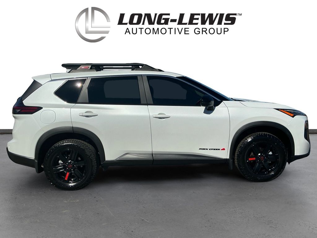 2025 Nissan Rogue Rock Creek Everest White Pearl Rock Creek AWD CVT with Xtronic 1.5L DOHC AWD, 4-Way Power Passenger Seat, 4-Wheel Disc Brakes, 6 Speakers, ABS brakes, Air Conditioning, Alloy wheels, AM/FM radio: SiriusXM, Android Auto and Apple CarPlay, Auto High-beam Headlights, Auto-Dimming Inside Mirror, Automatic temperature control, Brake assist, Delay-off headlights, Driver door bin, Driver vanity mirror, Dual front impact airbags, Dual front side impact airbags, Electronic Stability Control, Emergency communication system: NissanConnect Services, Four wheel independent suspension, Front anti-roll bar, Front Bucket Seats, Front Center Armrest, Front dual zone A/C, Front reading lights, Fully automatic headlights, Heated door mirrors, Heated Front Bucket Seats with 8-Way Power Driver Seat, Heated front seats, Illuminated entry, Interior LED Accent Lighting, Knee airbag, Leatherette and Ballistic Nylon Seating with Contrast Stich and Rock Creek Logo, Low tire pressure warning, Memory Driver Seat and Outside Mirrors, Motion-Activated Power Liftgate, Occupant sensing airbag, Outside temperature display, Overhead airbag, Overhead console, Panic alarm, Passenger door bin, Passenger vanity mirror, Power door mirrors, Power driver seat, Power Liftgate, Power steering, Power windows, Premium Paint, Radio data system, Radio: NissanConnect with 6 Speakers, Rear anti-roll bar, Rear seat center armrest, Rear side impact airbag, Rear window defroster, Rear window wiper, Remote keyless entry, Reverse Tilt-Down Outside Mirrors with Integrated Turn Signals, Rock Creek All-Season 1-Piece Cargo Area Protector with Floor Liners, Rock Creek Premium Package, Roof rack, Speed control, Speed-sensing steering, Speed-Sensitive Wipers, Split folding rear seat, Spoiler, Steering wheel mounted audio controls, Tachometer, Telescoping steering wheel, Tilt steering wheel, Traction control, Trip computer, Variably intermittent wipers, Wheels: 17" Dark Painted Alloy, Wireless Charging Pad, AWD.
