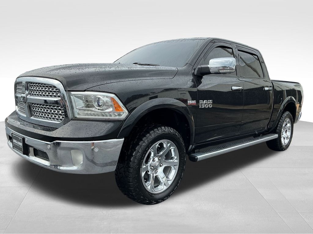 2018 Ram 1500 Laramie Brilliant Black Crystal Pearlcoat Laramie 4WD 8-Speed Automatic HEMI 5.7L V8 Multi Displacement VVT 1-Yr SiriusXM Guardian Trial, 115V Auxiliary Power Outlet, 20" x 9" Chrome Clad Aluminum Wheels, 3.21 Rear Axle Ratio, 4-Wheel Disc Brakes, 5-Year SiriusXM Traffic Service, 5-Year SiriusXM Travel Link Service, 6 Speakers, 8.4" Touchscreen Display, 9 Alpine Speakers w/Subwoofer (DISC), ABS brakes, Active Grille Shutters, Adjustable pedals, Air Conditioning, Alloy wheels, AM/FM radio: SiriusXM, Apple CarPlay, Apple CarPlay/Android Auto, Audio Jack Input for Mobile Devices, Audio memory, Auto High Beam Headlamp Control, Auto-dimming door mirrors, Auto-dimming Rear-View mirror, Automatic temperature control, Brake assist, Bumpers: chrome, Center Hub, Compass, Convenience Group, Delay-off headlights, Driver door bin, Driver vanity mirror, Dual front impact airbags, Dual front side impact airbags, Electronic Shift, Electronic Stability Control, Emergency communication system: SiriusXM Guardian, Folding Flat Load Floor Storage, Front & Rear Rubber Floor Mats, Front anti-roll bar, Front Center Armrest w/Storage, Front dual zone A/C, Front fog lights, Front reading lights, Front wheel independent suspension, Fully automatic headlights, Garage door transmitter, Google Android Auto, GPS Antenna Input, GPS Navigation, HD Radio, Heated door mirrors, Heated Front Seats, Heated front seats, Heated steering wheel, High Back Seats, Illuminated entry, Integrated Voice Command w/Bluetooth, Keyless Enter-N-Go, Leather steering wheel, Leather Trim 40/20/40 Bench Seat, LED Bed Lighting, Low tire pressure warning, Media Hub (2 USB, AUX), Memory seat, Occupant sensing airbag, Outside temperature display, Overhead airbag, Overhead console, Panic alarm, ParkSense Front/Rear Park Assist System, ParkView Rear Back-Up Camera, Passenger door bin, Passenger vanity mirror, Pedal memory, Power 10-Way Memory Driver & 6-Way Passenger Seats, Power door mirrors, Power driver seat, Power passenger seat, Power steering, Power windows, Quick Order Package 26H Laramie (DISC), Radio data system, Radio: Uconnect 4C Nav w/8.4" Display, Radio: Uconnect 4C w/8.4" Display, Rain Sensitive Windshield Wipers, Rear 60/40 Split Folding Seat, Rear anti-roll bar, Rear seat center armrest, Rear step bumper, Remote keyless entry, Remote Proximity Keyless Entry, Remote Start System, Remote USB Port, Security system, SiriusXM Satellite Radio, SiriusXM Traffic Plus, SiriusXM Travel Link, Speed control, Split folding rear seat, Steering wheel mounted audio controls, Tachometer, Tilt steering wheel, Tip Start, Traction control, Trip computer, Turn signal indicator mirrors, USB Host Flip, Variably intermittent wipers, Ventilated Front Seats, Ventilated front seats, Voltmeter, Wheel to Wheel Side Steps.