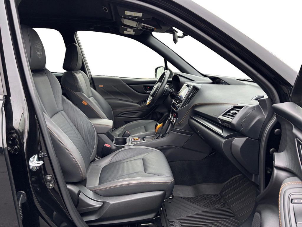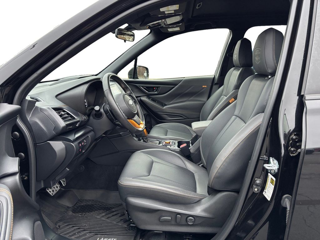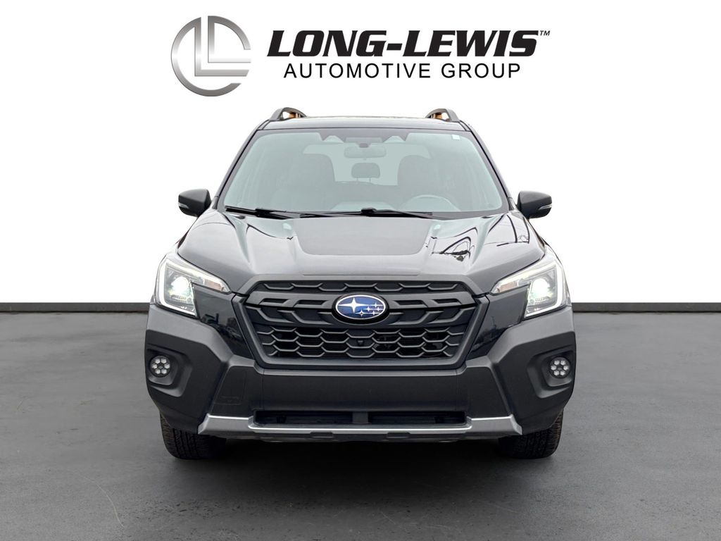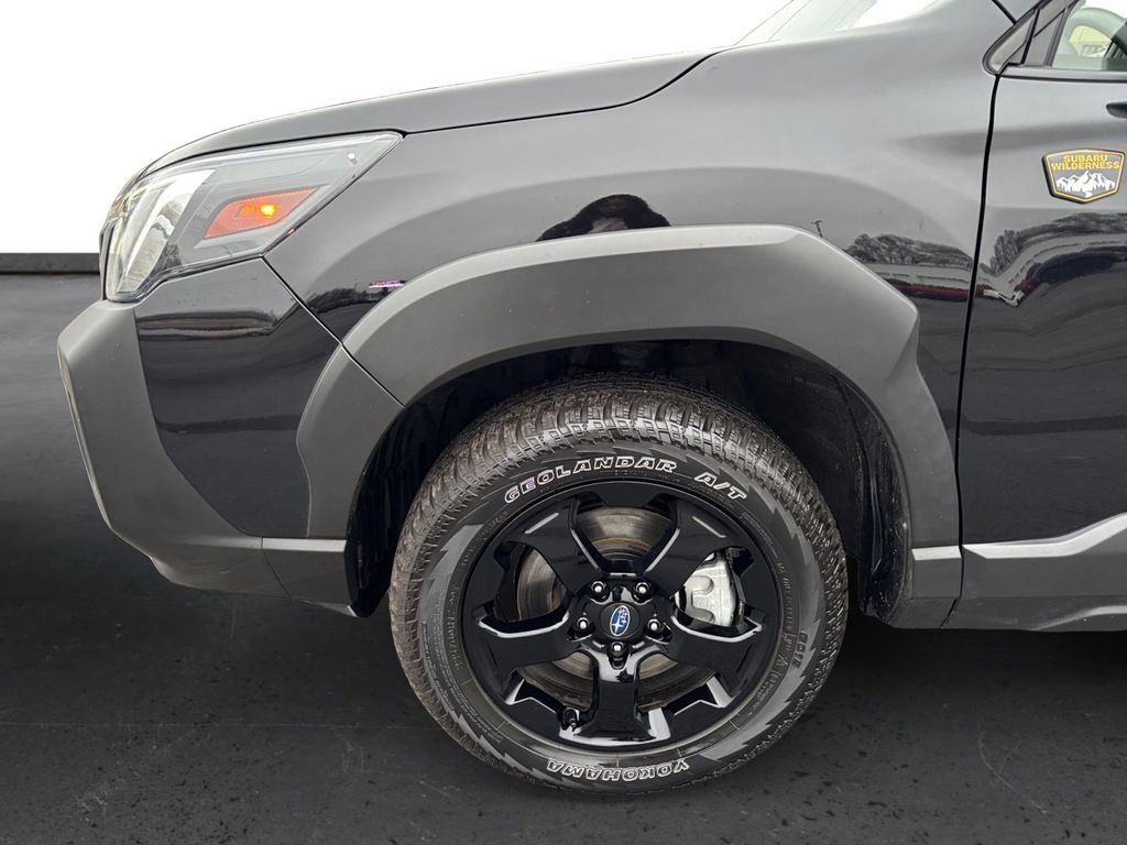2023 Subaru Forester Wilderness Crystal Black Silica Wilderness AWD Lineartronic CVT 2.5L 4-Cylinder DOHC 16V 4-Wheel Disc Brakes, 4.11 Axle Ratio, 6 Speakers, 8" Audio w/harman/kardon & Power Rear Gate, ABS brakes, Air Conditioning, Alloy wheels, AM/FM radio: SiriusXM, Anti-whiplash front head restraints, Auto High-beam Headlights, Automatic temperature control, Brake assist, Bumpers: body-color, CD player, Driver door bin, Driver vanity mirror, Dual front impact airbags, Dual front side impact airbags, Electronic Stability Control, Emergency communication system: STARLINK Safety and Security (Subscription Required), Exterior Parking Camera Rear, Four wheel independent suspension, Front anti-roll bar, Front Bucket Seats, Front Center Armrest, Front dual zone A/C, Front fog lights, Front reading lights, Fully automatic headlights, harman/kardon 9-Speaker Audio System, Heated door mirrors, Heated Front Bucket Seats, Heated front seats, Illuminated entry, Knee airbag, Leather Shift Knob, Low tire pressure warning, Navigation System, Occupant sensing airbag, Outside temperature display, Overhead airbag, Overhead console, Panic alarm, Passenger door bin, Passenger vanity mirror, Power door mirrors, Power driver seat, Power moonroof: Panoramic, Power Rear Gate, Power steering, Power windows, Radio data system, Radio: Subaru Starlink 8.0" Multimedia Nav System, Radio: Subaru Starlink 8.0" Multimedia Plus System, Rear anti-roll bar, Rear Bumper Cover, Rear seat center armrest, Rear window defroster, Rear window wiper, Remote keyless entry, Roof rack: rails only, Security system, Speed control, Speed-sensing steering, Split folding rear seat, Spoiler, STARLINK/Apple CarPlay/Android Auto, Steering wheel mounted audio controls, Tachometer, Telescoping steering wheel, Textured StarTex Upholstery, Tilt steering wheel, Traction control, Trip computer, Turn signal indicator mirrors, Variably intermittent wipers, Wheels: 17" x 7.0 J Matte Black Finish Alum-Alloy.