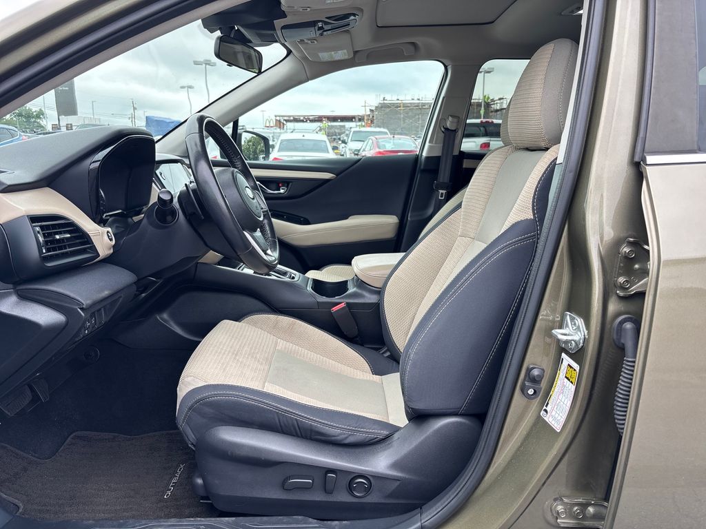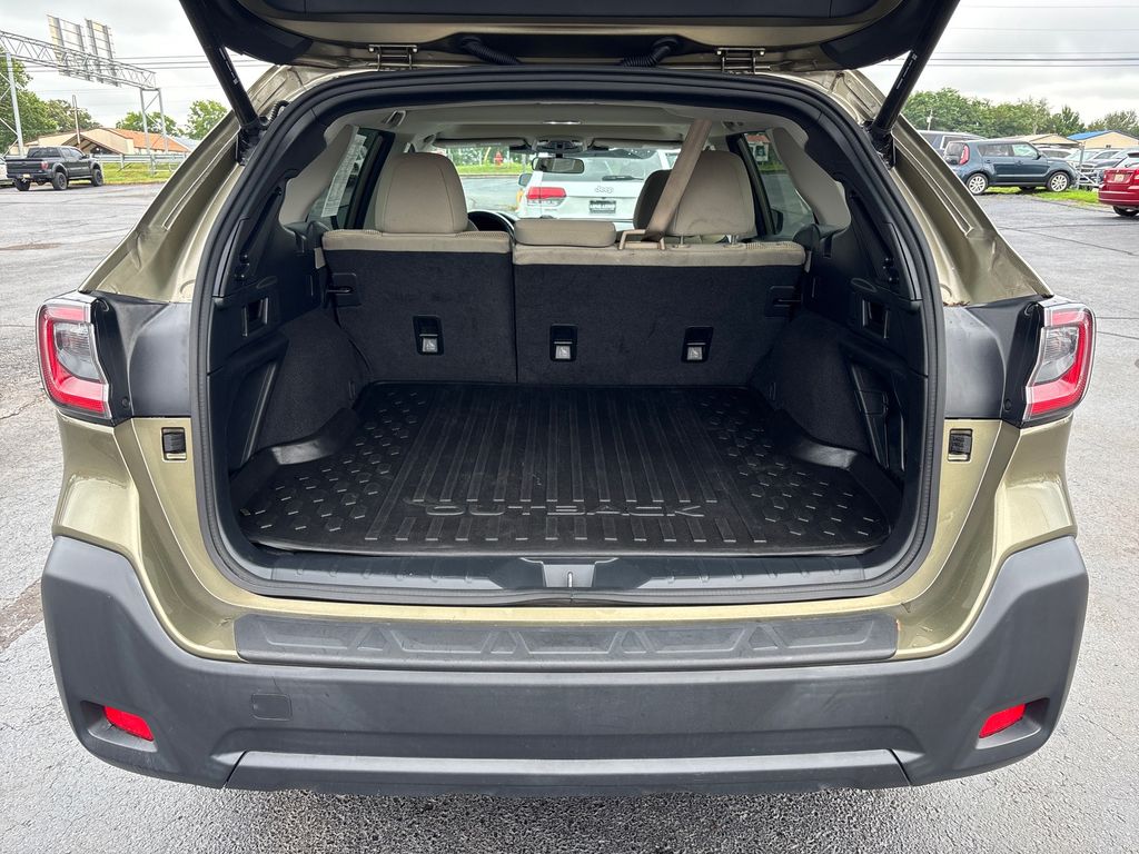 2023 Subaru Outback Premium Autumn Green Metallic Premium AWD CVT Lineartronic 2.5L 4-Cylinder DOHC 16V 3.90 Axle Ratio, 4-Wheel Disc Brakes, 6 Speakers, ABS brakes, Air Conditioning, Alloy wheels, AM/FM radio: SiriusXM, Auto High-beam Headlights, Automatic temperature control, Blind Spot Detection (BSD), Brake assist, BSD & RCTA & Keyless Access & Push Button Start, Bumpers: body-color, Cloth Upholstery, Driver door bin, Driver vanity mirror, Dual front impact airbags, Dual front side impact airbags, Electronic Stability Control, Emergency communication system: STARLINK Safety Plus (3-year free trial), Exterior Parking Camera Rear, Four wheel independent suspension, Front anti-roll bar, Front Bucket Seats, Front Center Armrest w/Storage, Front dual zone A/C, Front fog lights, Front reading lights, Fully automatic headlights, Hands-Free Power Rear Gate, Heated door mirrors, Heated Front Bucket Seats, Heated front seats, Illuminated entry, Keyless Access w/Push Button Start, Knee airbag, Leather Shift Knob, Leather steering wheel, Low tire pressure warning, Occupant sensing airbag, Outside temperature display, Overhead airbag, Overhead console, Panic alarm, Passenger door bin, Passenger vanity mirror, Power door mirrors, Power driver seat, Power Moonroof, Power steering, Power windows, Radio: Subaru STARLINK 11.6" Multimedia Nav System, Radio: Subaru STARLINK 11.6" Multimedia Plus Sys, Rear anti-roll bar, Rear Bumper Cover, Rear Cross Traffic Alert (RCTA), Rear seat center armrest, Rear window defroster, Rear window wiper, Remote keyless entry, Roof rack, Security system, Speed control, Speed-sensing steering, Split folding rear seat, Spoiler, Steering wheel mounted audio controls, Steering Wheel Paddle Shift Control Switches, Tachometer, Telescoping steering wheel, Tilt steering wheel, Traction control, Trip computer, Turn signal indicator mirrors, Variably intermittent wipers, Wheels: 17" x 7J Black Aluminum Alloy, Wireless Charger.