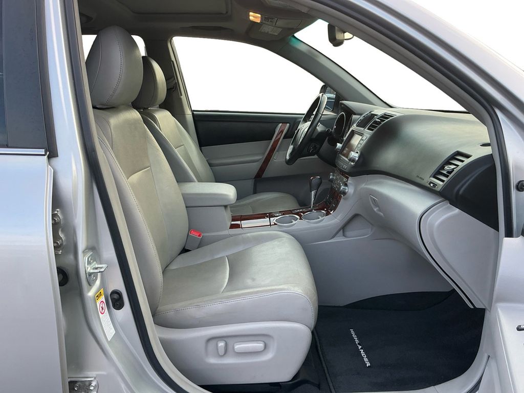 2012 Toyota Highlander Limited Silver Limited FWD 5-Speed Automatic with Overdrive 3.5L V6 SMPI DOHC 19" x 7.5J 5-Spoke Aluminum Alloy Wheels, 3.48 Axle Ratio, 3rd row seats: split-bench, 4-Wheel Disc Brakes, 6 Speakers, ABS brakes, Air Conditioning, Alloy wheels, AM/FM radio: SiriusXM, AM/FM/CD w/6 Speakers, Anti-whiplash front head restraints, Auto-dimming Rear-View mirror, Automatic temperature control, Brake assist, Bumpers: body-color, CD player, Compass, Delay-off headlights, Driver door bin, Driver vanity mirror, Dual front impact airbags, Dual front side impact airbags, Electronic Stability Control, Exterior Parking Camera Rear, Four wheel independent suspension, Front anti-roll bar, Front Bucket Seats, Front Center Armrest, Front dual zone A/C, Front fog lights, Front reading lights, Fully automatic headlights, Garage door transmitter, Heated door mirrors, Heated Front Bucket Seats, Heated front seats, Illuminated entry, Knee airbag, Low tire pressure warning, Occupant sensing airbag, Outside temperature display, Overhead airbag, Overhead console, Panic alarm, Passenger door bin, Passenger vanity mirror, Perforated Leather Seat Material, Power door mirrors, Power driver seat, Power Liftgate, Power moonroof, Power passenger seat, Power steering, Power windows, Radio data system, Rear air conditioning, Rear anti-roll bar, Rear reading lights, Rear window defroster, Rear window wiper, Remote keyless entry, Roof rack: rails only, Security system, Speed control, Speed-sensing steering, Split folding rear seat, Spoiler, Steering wheel mounted A/C controls, Steering wheel mounted audio controls, Tachometer, Telescoping steering wheel, Tilt steering wheel, Traction control, Trip computer, Variably intermittent wipers.