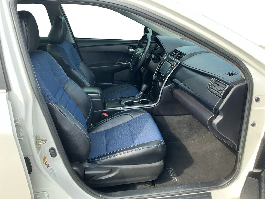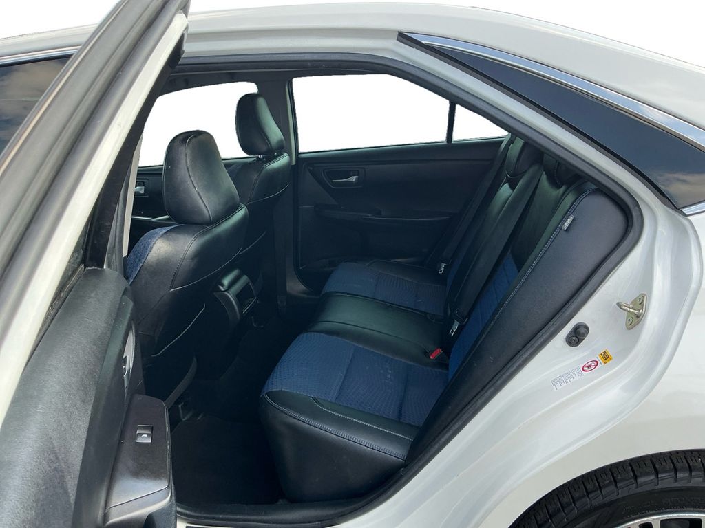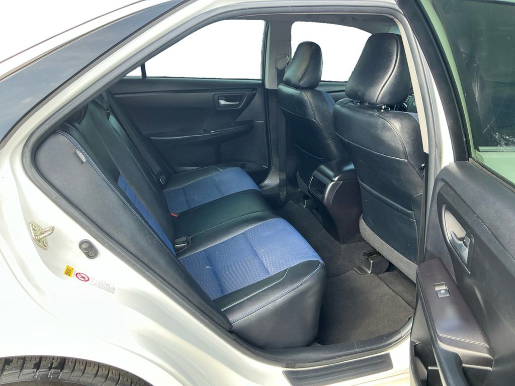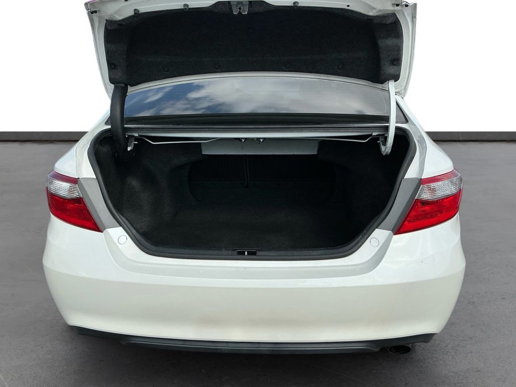 2016 Toyota Camry White FWD 6-Speed Automatic 2.5L I4 SMPI DOHC 4-Wheel Disc Brakes, 6 Speakers, ABS brakes, Air Conditioning, Brake assist, Bumpers: body-color, CD player, Delay-off headlights, Driver door bin, Driver vanity mirror, Dual front impact airbags, Dual front side impact airbags, Electronic Stability Control, Exterior Parking Camera Rear, Four wheel independent suspension, Front anti-roll bar, Front Bucket Seats, Front Center Armrest, Front reading lights, Fully automatic headlights, Heated door mirrors, Illuminated entry, Knee airbag, Low tire pressure warning, Occupant sensing airbag, Outside temperature display, Overhead airbag, Overhead console, Panic alarm, Passenger door bin, Passenger vanity mirror, Power door mirrors, Power driver seat, Power steering, Power windows, Radio: Entune Audio Plus, Rear anti-roll bar, Rear seat center armrest, Rear side impact airbag, Rear window defroster, Remote keyless entry, Speed control, Speed-sensing steering, Split folding rear seat, Steering wheel mounted audio controls, Tachometer, Telescoping steering wheel, Tilt steering wheel, Traction control, Trip computer, Variably intermittent wipers.