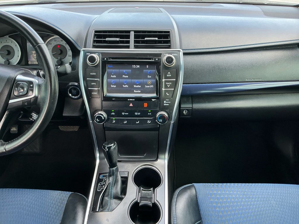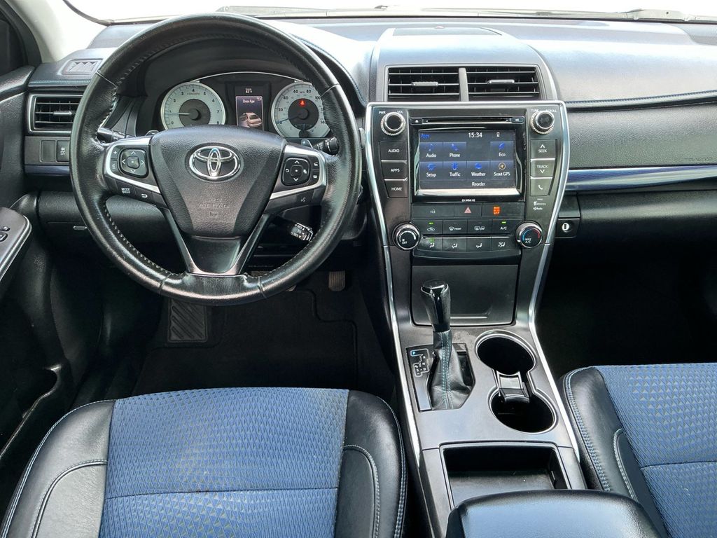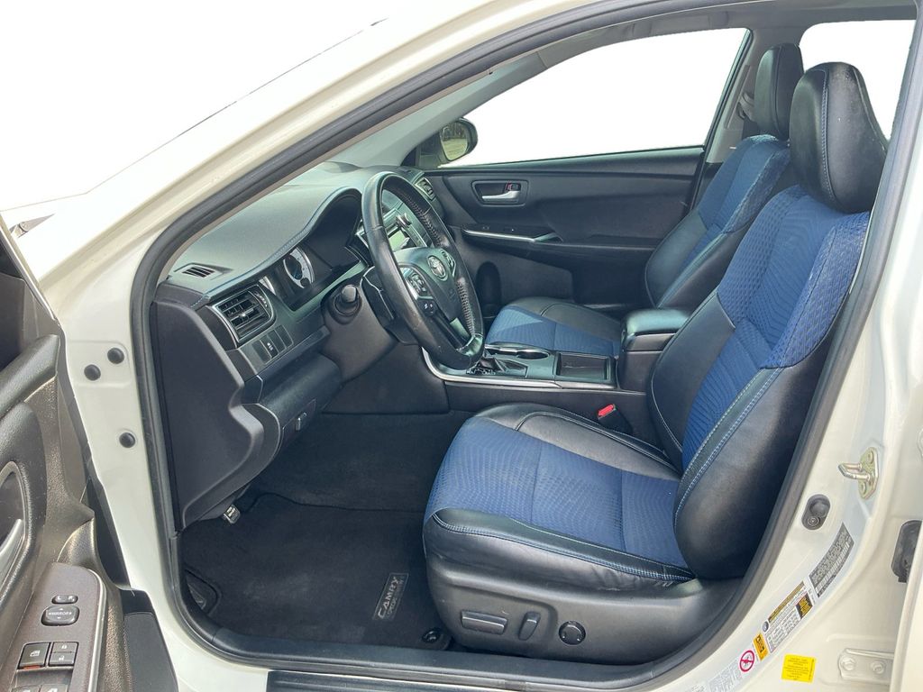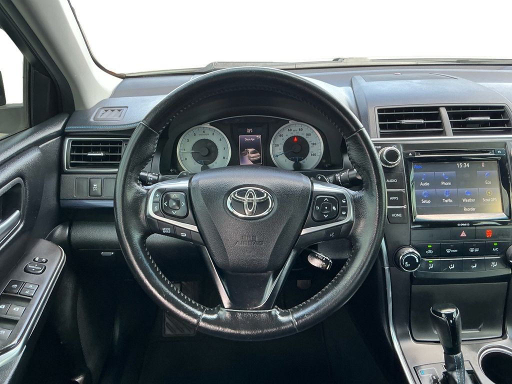 2016 Toyota Camry White FWD 6-Speed Automatic 2.5L I4 SMPI DOHC 4-Wheel Disc Brakes, 6 Speakers, ABS brakes, Air Conditioning, Brake assist, Bumpers: body-color, CD player, Delay-off headlights, Driver door bin, Driver vanity mirror, Dual front impact airbags, Dual front side impact airbags, Electronic Stability Control, Exterior Parking Camera Rear, Four wheel independent suspension, Front anti-roll bar, Front Bucket Seats, Front Center Armrest, Front reading lights, Fully automatic headlights, Heated door mirrors, Illuminated entry, Knee airbag, Low tire pressure warning, Occupant sensing airbag, Outside temperature display, Overhead airbag, Overhead console, Panic alarm, Passenger door bin, Passenger vanity mirror, Power door mirrors, Power driver seat, Power steering, Power windows, Radio: Entune Audio Plus, Rear anti-roll bar, Rear seat center armrest, Rear side impact airbag, Rear window defroster, Remote keyless entry, Speed control, Speed-sensing steering, Split folding rear seat, Steering wheel mounted audio controls, Tachometer, Telescoping steering wheel, Tilt steering wheel, Traction control, Trip computer, Variably intermittent wipers.