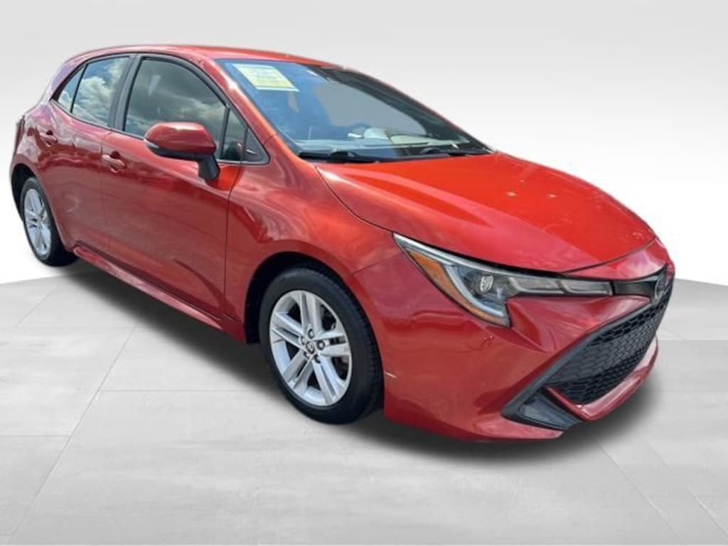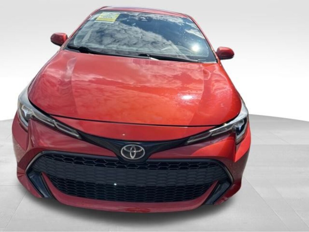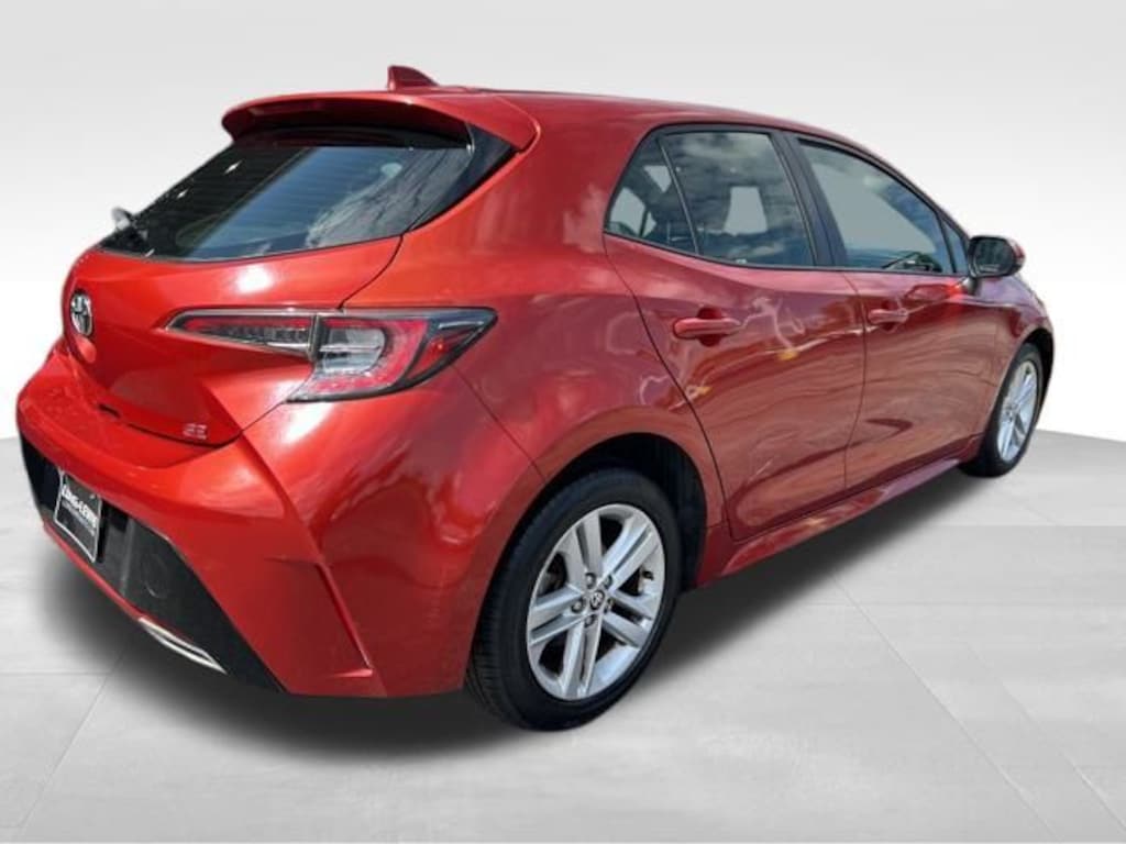 2019 Toyota Corolla Hatchback Red FWD 2.0L I4 4-Wheel Disc Brakes, 6 Speakers, ABS brakes, Air Conditioning, Alloy wheels, Auto High-beam Headlights, Automatic temperature control, Blind Spot Monitoring, Brake assist, Bumpers: body-color, Compass, Delay-off headlights, Driver door bin, Driver vanity mirror, Dual front impact airbags, Dual front side impact airbags, Electronic Stability Control, Emergency communication system: Safety Connect, Exterior Parking Camera Rear, Four wheel independent suspension, Front anti-roll bar, Front Bucket Seats, Front Center Armrest, Front reading lights, Heated door mirrors, Illuminated entry, Knee airbag, Leather Shift Knob, Low tire pressure warning, Occupant sensing airbag, Outside temperature display, Overhead airbag, Overhead console, Panic alarm, Passenger door bin, Passenger vanity mirror, Power door mirrors, Power steering, Power windows, Radio data system, Rear anti-roll bar, Rear seat center armrest, Rear window defroster, Rear window wiper, Remote keyless entry, Satellite Radio, Security system, Speed control, Speed-sensing steering, Split folding rear seat, Spoiler, Steering wheel mounted audio controls, Tachometer, Telescoping steering wheel, Tilt steering wheel, Traction control, Trip computer, Turn signal indicator mirrors, Variably intermittent wipers.