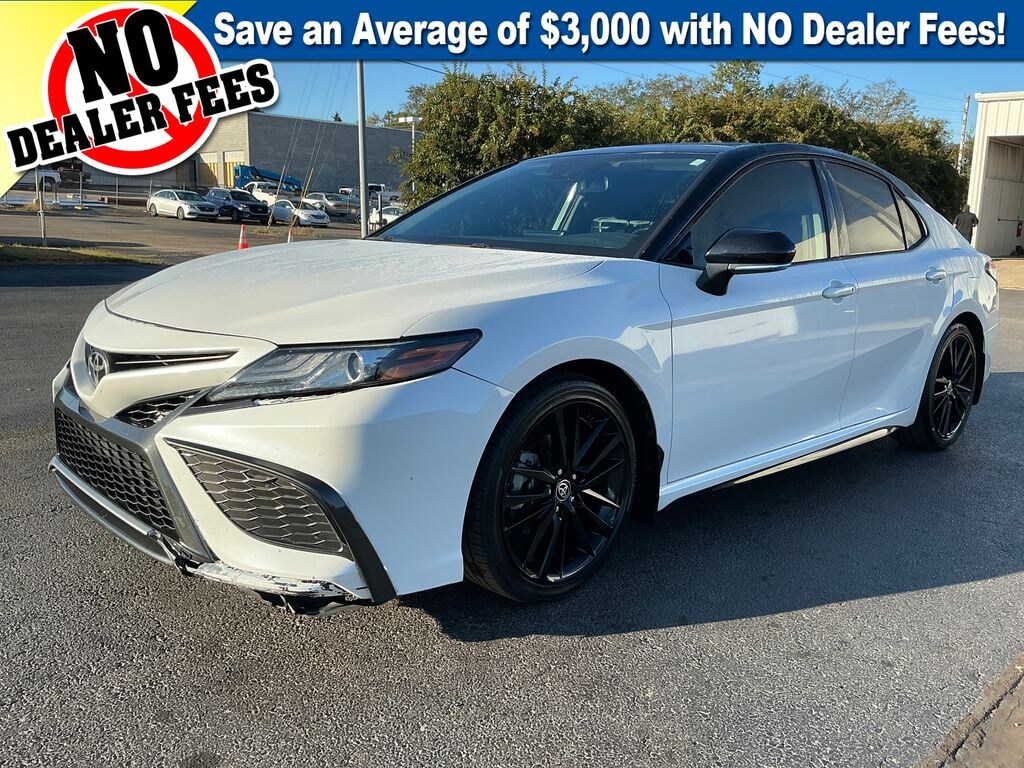 2021 Toyota Camry XSE White XSE FWD 8-Speed Automatic 2.5L I4 DOHC 16V Leather, 4-Wheel Disc Brakes, 6 Speakers, ABS brakes, Air Conditioning, Alloy wheels, AM/FM radio: SiriusXM, Apple CarPlay/Android Auto, Auto High-beam Headlights, Auto-dimming Rear-View mirror, Automatic temperature control, Brake assist, Bumpers: body-color, Delay-off headlights, Driver door bin, Driver vanity mirror, Dual front impact airbags, Dual front side impact airbags, Electronic Stability Control, Emergency communication system: Safety Connect with 1-year trial, Exterior Parking Camera Rear, Four wheel independent suspension, Front anti-roll bar, Front Bucket Seats, Front Center Armrest, Front dual zone A/C, Front reading lights, Fully automatic headlights, Garage door transmitter: HomeLink, Heated door mirrors, Heated front seats, Illuminated entry, Knee airbag, Low tire pressure warning, Multi-Stage Heated Front Bucket Seats, Occupant sensing airbag, Outside temperature display, Overhead airbag, Overhead console, Panic alarm, Passenger door bin, Passenger vanity mirror, Perforated Leather Seat Trim, Power door mirrors, Power driver seat, Power passenger seat, Power steering, Power windows, Radio data system, Radio: AM/FM/HD Audio Plus, Rear anti-roll bar, Rear reading lights, Rear seat center armrest, Rear side impact airbag, Rear window defroster, Remote keyless entry, Security system, Speed control, Speed-sensing steering, Split folding rear seat, Spoiler, Steering wheel mounted audio controls, Tachometer, Telescoping steering wheel, Tilt steering wheel, Traction control, Trip computer, Turn signal indicator mirrors, Variably intermittent wipers, Wheels: 8.0J x 19" Black Machined-Finish Alloy, Leather.