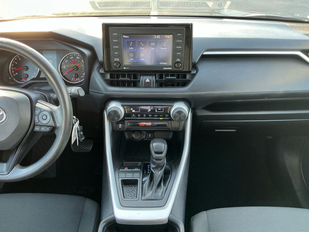 2021 Toyota RAV4 LE Midnight Black Metallic LE FWD 8-Speed Automatic 2.5L 4-Cylinder DOHC Dual VVT-i Black Cloth, 17" Steel Wheels, 4-Wheel Disc Brakes, 6 Speakers, ABS brakes, Air Conditioning, AM/FM radio: SiriusXM, AM/FM Stereo, Apple CarPlay/Android Auto, Auto High-beam Headlights, Axle Ratio: 3.177, Brake assist, Bumpers: body-color, Driver door bin, Driver vanity mirror, Dual front impact airbags, Dual front side impact airbags, Electronic Stability Control, Emergency communication system, Exterior Parking Camera Rear, Fabric Seat Trim, Four wheel independent suspension, Front anti-roll bar, Front Bucket Seats, Front Center Armrest, Front reading lights, Illuminated entry, Knee airbag, Low tire pressure warning, Occupant sensing airbag, Outside temperature display, Overhead airbag, Overhead console, Panic alarm, Passenger door bin, Passenger vanity mirror, Power door mirrors, Power steering, Power windows, Radio data system, Rear anti-roll bar, Rear seat center armrest, Rear window defroster, Rear window wiper, Remote keyless entry, Roof rack: rails only, Speed control, Speed-sensing steering, Split folding rear seat, Spoiler, Steering wheel mounted audio controls, Tachometer, Telescoping steering wheel, Tilt steering wheel, Traction control, Trip computer, Black Cloth.