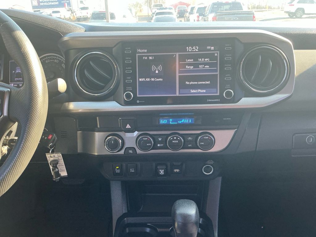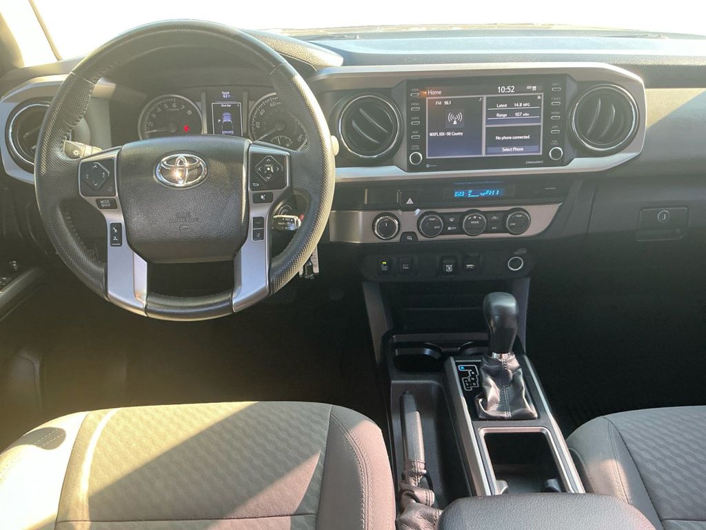 2022 Toyota Tacoma V6 Black V6 4WD 6-Speed 3.5L V6 PDI DOHC 24V LEV3-ULEV70 278hp 4WD, ABS brakes, Air Conditioning, AM/FM radio: SiriusXM, Anti-whiplash front head restraints, Apple CarPlay/Android Auto, Auto High-beam Headlights, Automatic temperature control, Brake assist, Bumpers: body-color, Driver door bin, Dual front impact airbags, Dual front side impact airbags, Electronic Stability Control, Emergency communication system: Safety Connect with 1-year trial, Front anti-roll bar, Front Bucket Seats, Front Center Armrest, Front dual zone A/C, Front reading lights, Front wheel independent suspension, Illuminated entry, Knee airbag, Low tire pressure warning, Occupant sensing airbag, Outside temperature display, Overhead airbag, Overhead console, Passenger door bin, Power door mirrors, Power steering, Power windows, Rear step bumper, Speed control, Speed-sensing steering, Split folding rear seat, Steering wheel mounted audio controls, Tachometer, Telescoping steering wheel, Tilt steering wheel, Traction control, Variably intermittent wipers, 4WD.