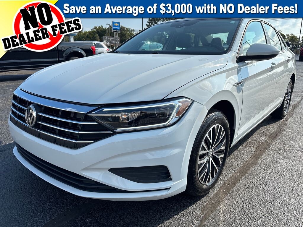 2019 Volkswagen Jetta SEL Pure White SEL FWD 8-Speed Automatic with Tiptronic 1.4L TSI Titan Black Premium Synthetic, 4-Wheel Disc Brakes, 9 Speakers, ABS brakes, Air Conditioning, Alloy wheels, AM/FM radio: SiriusXM, Auto High-beam Headlights, Auto-dimming Rear-View mirror, Automatic temperature control, Brake assist, Bumperdillo Protection Plate for Rear Bumper, Bumpers: body-color, Cold Weather Package, Delay-off headlights, Driver door bin, Driver vanity mirror, Dual front impact airbags, Dual front side impact airbags, Electronic Stability Control, Emergency communication system: VW Car-Net services (capabilities require enrollment or subscription), Exterior Parking Camera Rear, Front anti-roll bar, Front Bucket Seats, Front Center Armrest, Front dual zone A/C, Front reading lights, Front wheel independent suspension, Fully automatic headlights, Heated door mirrors, Heated Front Comfort Seats, Heated front seats, Illuminated entry, Leather Shift Knob, Low tire pressure warning, Monster Mats w/Logo Rubber Mats Kit (Set of 4), Occupant sensing airbag, Outside temperature display, Overhead airbag, Overhead console, Panic alarm, Passenger door bin, Passenger vanity mirror, Perforated V-Tex Leatherette Seat Trim, Power door mirrors, Power moonroof, Power steering, Power windows, Radio data system, Radio: Composition Media w/8" Touchscreen, Rain sensing wipers, Rear anti-roll bar, Rear reading lights, Rear seat center armrest, Rear window defroster, Remote CD player, Remote keyless entry, Speed control, Speed-sensing steering, Split folding rear seat, Steering wheel mounted audio controls, Tachometer, Telescoping steering wheel, Tilt steering wheel, Traction control, Trip computer, Variably intermittent wipers, Wheels: 16" Two-Tone Rama Black, Titan Black Premium Synthetic.