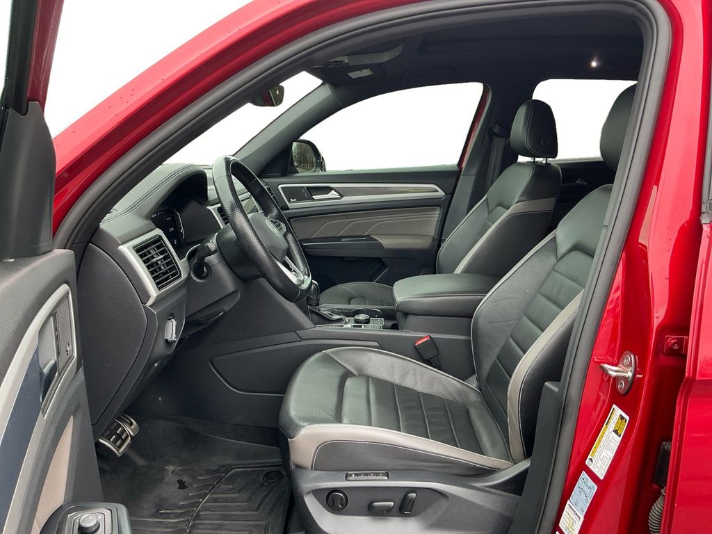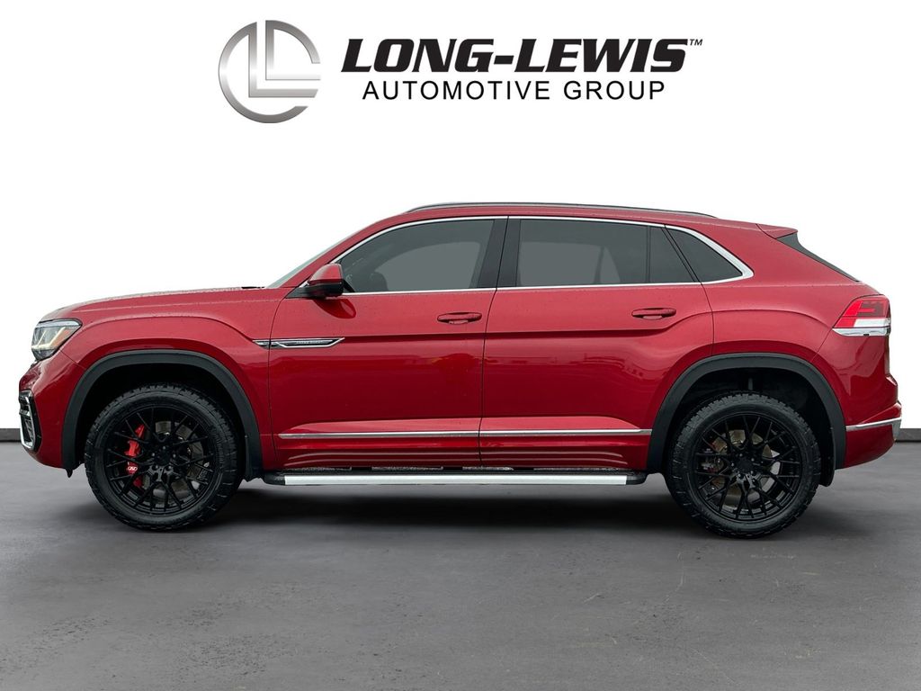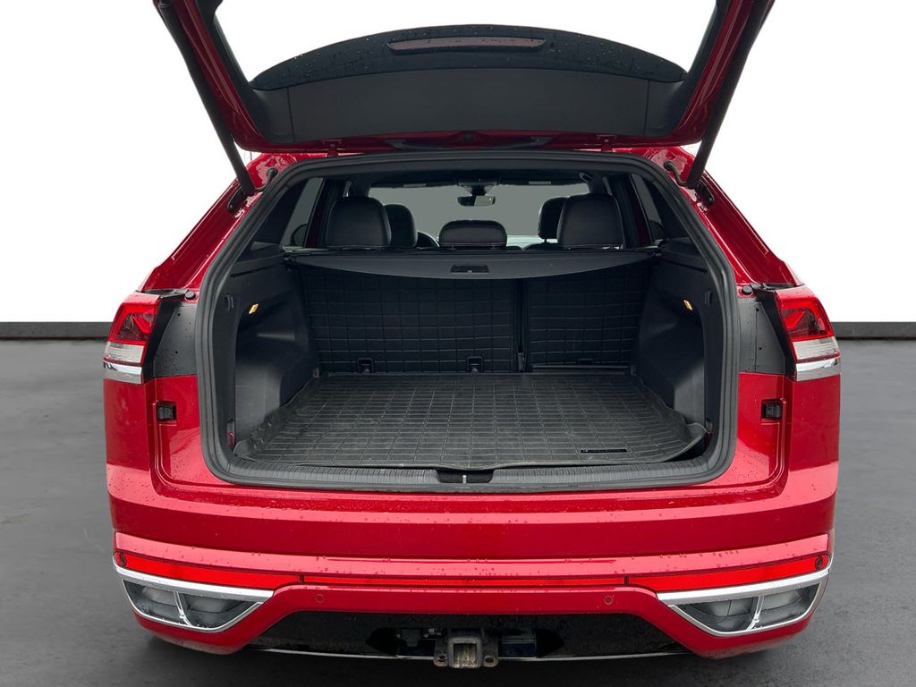 2021 Volkswagen Atlas Cross Sport 3.6L V6 SEL Premium R-Line Red 3.6L V6 SEL Premium R-Line AWD 8-Speed Automatic with Tiptronic 3.6L VR6 12 Speakers, 3.60 Axle Ratio, 4-Wheel Disc Brakes, ABS brakes, Air Conditioning, Alloy wheels, AM/FM radio: SiriusXM with 360L, Auto High-beam Headlights, Auto-dimming Rear-View mirror, Automatic temperature control, Brake assist, Bumpers: body-color, Compass, Delay-off headlights, Driver door bin, Driver vanity mirror, Dual front impact airbags, Dual front side impact airbags, Electronic Stability Control, Emergency communication system: VW Car-Net services (capabilities require enrollment or subscription), Four wheel independent suspension, Front anti-roll bar, Front Bucket Seats, Front Center Armrest, Front dual zone A/C, Front fog lights, Front reading lights, Fully automatic headlights, Heated & Ventilated Front Comfort Sport Seats, Heated door mirrors, Heated front seats, Heated rear seats, Heated steering wheel, Illuminated entry, Leather Shift Knob, Low tire pressure warning, Memory seat, Navigation System, Occupant sensing airbag, Outside temperature display, Overhead airbag, Overhead console, Panic alarm, Passenger door bin, Passenger vanity mirror, Perforated Vienna Leather Seating Surfaces, Power door mirrors, Power driver seat, Power Liftgate, Power moonroof, Power passenger seat, Power steering, Power windows, Radio data system, Radio: MIB3 Discover Media w/8" Touchscreen Navigation, Rain sensing wipers, Rear anti-roll bar, Rear reading lights, Rear seat center armrest, Rear window defroster, Rear window wiper, Remote keyless entry, Roof rack: rails only, Security system, Speed control, Speed-sensing steering, Split folding rear seat, Spoiler, Sport steering wheel, Standard Suspension, Steering wheel mounted audio controls, Tachometer, Telescoping steering wheel, Tilt steering wheel, Traction control, Trip computer, Turn signal indicator mirrors, Variably intermittent wipers, Ventilated front seats, Wheels: 21" Two-Tone Machined Alloy.