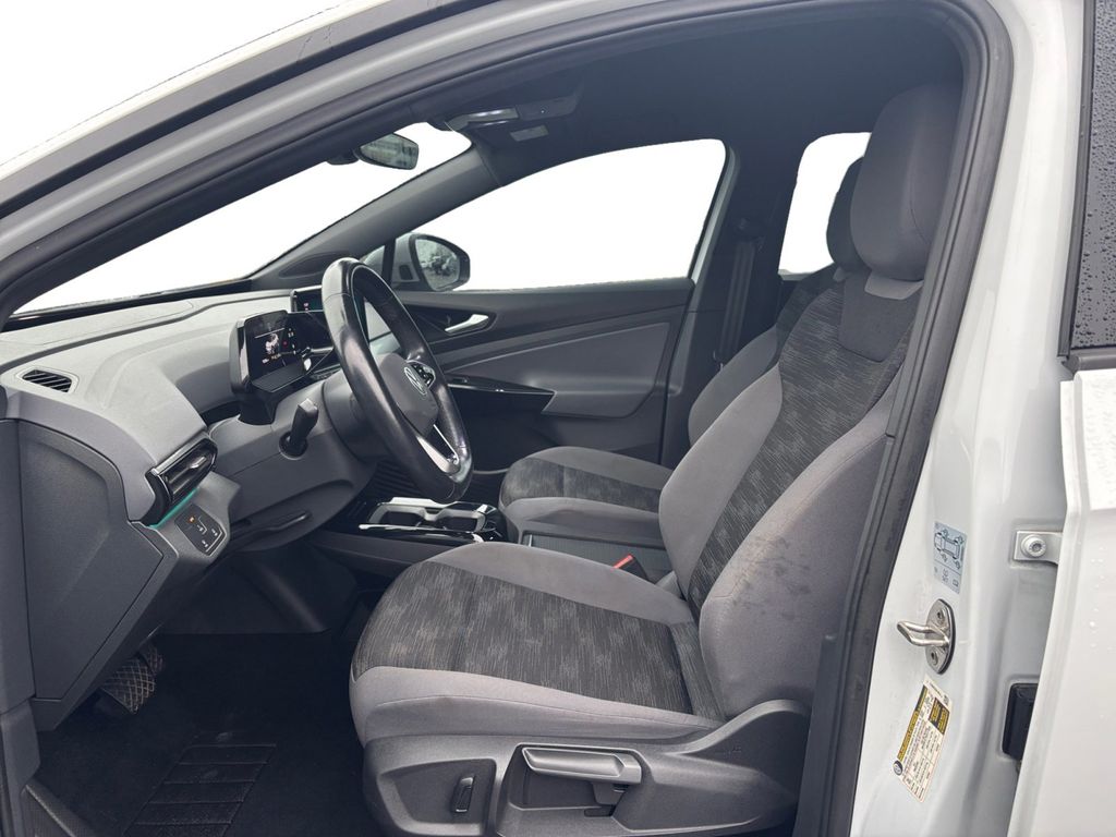 2021 Volkswagen ID.4 Pro White Pro RWD Single-Speed Automatic Electric Motor 4 Wheel Independent Suspension, 4.39 Axle Ratio, 7 Speakers, ABS brakes, Air Conditioning, Alloy wheels, Auto High-beam Headlights, Auto-dimming Rear-View mirror, Automatic temperature control, Brake assist, Bumpers: body-color, Cloth Seating Surfaces, Delay-off headlights, Driver door bin, Driver vanity mirror, Driver's Seat Mounted Armrest, Dual front impact airbags, Dual front side impact airbags, Electronic Stability Control, Emergency communication system: VW Car-Net services (capabilities require enrollment or subscription), Exterior Parking Camera Rear, Four wheel independent suspension, Front anti-roll bar, Front Bucket Seats, Front dual zone A/C, Front reading lights, Fully automatic headlights, Heated door mirrors, Heated Front Seats, Heated front seats, Heated steering wheel, Illuminated entry, Low tire pressure warning, Navigation System, Occupant sensing airbag, Outside temperature display, Overhead airbag, Overhead console, Panic alarm, Passenger door bin, Passenger seat mounted armrest, Passenger vanity mirror, Power door mirrors, Power driver seat, Power passenger seat, Power steering, Power windows, Radio data system, Radio: Discover Pro w/10" Touchscreen Navigation, Rain sensing wipers, Rear anti-roll bar, Rear reading lights, Rear window defroster, Rear window wiper, Remote keyless entry, Roof rack: rails only, Speed control, Speed-sensing steering, Split folding rear seat, Spoiler, Steering wheel mounted audio controls, Telescoping steering wheel, Tilt steering wheel, Traction control, Trip computer, Turn signal indicator mirrors, Variably intermittent wipers, Wheels: 19" 5-Spoke 2-Tone Machined Alloy.