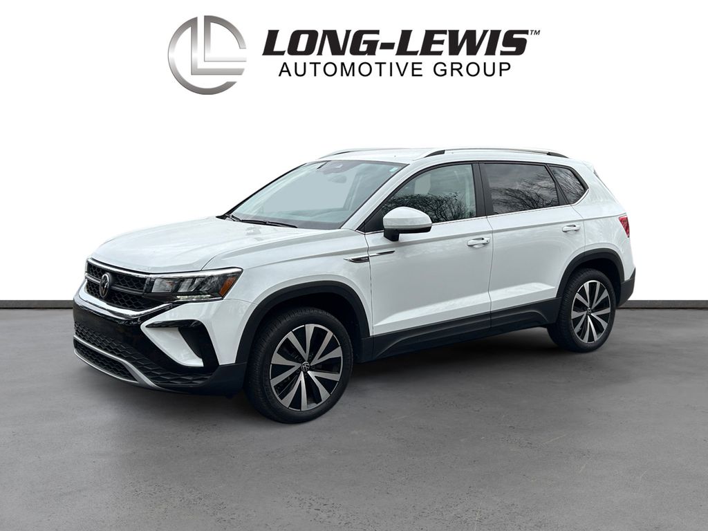2023 Volkswagen Taos 1.5T SE Certified. Pure White 1.5T SE FWD 8-Speed Automatic with Tiptronic 1.5L I4 Turbocharged DOHC 16V LEV3-SULEV30 158hp Volkswagen Certified, 3.23 Axle Ratio, 4-Wheel Disc Brakes, 6 Speakers, ABS brakes, Active Blind Spot Monitor, Air Conditioning, Alloy wheels, AM/FM radio: SiriusXM with 360L, Auto High-beam Headlights, Auto-Dimming Rearview Mirror (SRV) (DISC), Brake assist, Bumpers: body-color, Cargo Area Retractable Privacy Cover, CloudTex & Cloth Seating Surfaces, Compass, Delay-off headlights, Driver door bin, Driver vanity mirror, Dual front impact airbags, Dual front side impact airbags, Electronic Stability Control, Emergency communication system: VW Car-Net Safe & Secure 5-year, Exterior Parking Camera Rear, First Aid Kit, Front anti-roll bar, Front Bucket Seats, Front Center Armrest, Front reading lights, Front Strut Rear Torsion Beam Suspension, Front wheel independent suspension, Fully automatic headlights, Heated door mirrors, Heated Front Comfort Seats, Heated front seats, Heated steering wheel, Illuminated entry, Leather Shift Knob, Low tire pressure warning, Occupant sensing airbag, Outside temperature display, Overhead airbag, Overhead console, Panic alarm, Passenger door bin, Passenger vanity mirror, Power door mirrors, Power driver seat, Power steering, Power windows, Radio data system, Radio: MIB3 Composition Media AM/FM/HD, Rain sensing wipers, Rear anti-roll bar, Rear seat center armrest, Rear window defroster, Rear window wiper, Remote keyless entry, Roadside Assistance Kit, Roof rack: rails only, Rubber Mats Kit (SNM), Security system, Speed control, Speed-sensing steering, Split folding rear seat, Spoiler, Steering wheel mounted audio controls, Tachometer, Telescoping steering wheel, Tilt steering wheel, Traction control, Trip computer, Variably intermittent wipers, Wheels: 18" 2-Tone Machined Alloy.