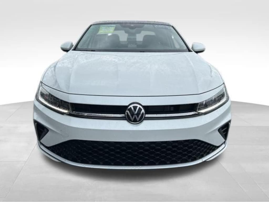 2025 Volkswagen Jetta 1.5T SE Opal White Pearl 1.5T SE FWD 8-Speed Automatic with Tiptronic 1.5L I-4 DI DOHC Turbocharged Grigio/Titan Black Premium Synthetic, 4-Wheel Disc Brakes, 6 Speakers, ABS brakes, Active Blind Spot Monitor, Air Conditioning, Alloy wheels, AM/FM radio: SiriusXM with 360L, Auto-dimming Rear-View mirror, Auto-Dimming Rearview Mirror w/HomeLink Connect, Automatic temperature control, Black Wheel Package, Brake assist, Bumpers: body-color, CloudTex & V-Tex Leatherette Seat Trim, Delay-off headlights, Driver door bin, Driver vanity mirror, Dual front impact airbags, Dual front side impact airbags, Electronic Stability Control, Emergency communication system: VW Car-Net Safe & Secure 5-year, Exterior Parking Camera Rear, First Aid Kit, Front anti-roll bar, Front Bucket Seats, Front Center Armrest, Front dual zone A/C, Front wheel independent suspension, Fully automatic headlights, Heated door mirrors, Heated Front Seats, Heated front seats, Heavy Duty Trunk Liner w/VW CarGo Blocks, Illuminated entry, Leather Shift Knob, Leather steering wheel, Low tire pressure warning, Occupant sensing airbag, Outside temperature display, Overhead airbag, Overhead console, Panic alarm, Passenger door bin, Passenger vanity mirror, Power door mirrors, Power driver seat, Power steering, Power Tilting & Sliding Sunroof, Power windows, Radio data system, Radio: MIB3 Composition Media w/8" Touchscreen, Rain sensing wipers, Rear anti-roll bar, Rear reading lights, Rear seat center armrest, Rear window defroster, Remote keyless entry, Rubber Monster Mats Kit (Set of 4), Speed control, Speed-sensing steering, Split folding rear seat, Steering wheel mounted audio controls, Sunroof Package, Tachometer, Telescoping steering wheel, Tilt steering wheel, Traction control, Trip computer, Variably intermittent wipers, VW Care, Wheels: 17" Twin 5-Spoke 2-Tone Machined Alloy, Wheels: 18" Dark Graphite Painted Alloy, Grigio/Titan Black Premium Synthetic.