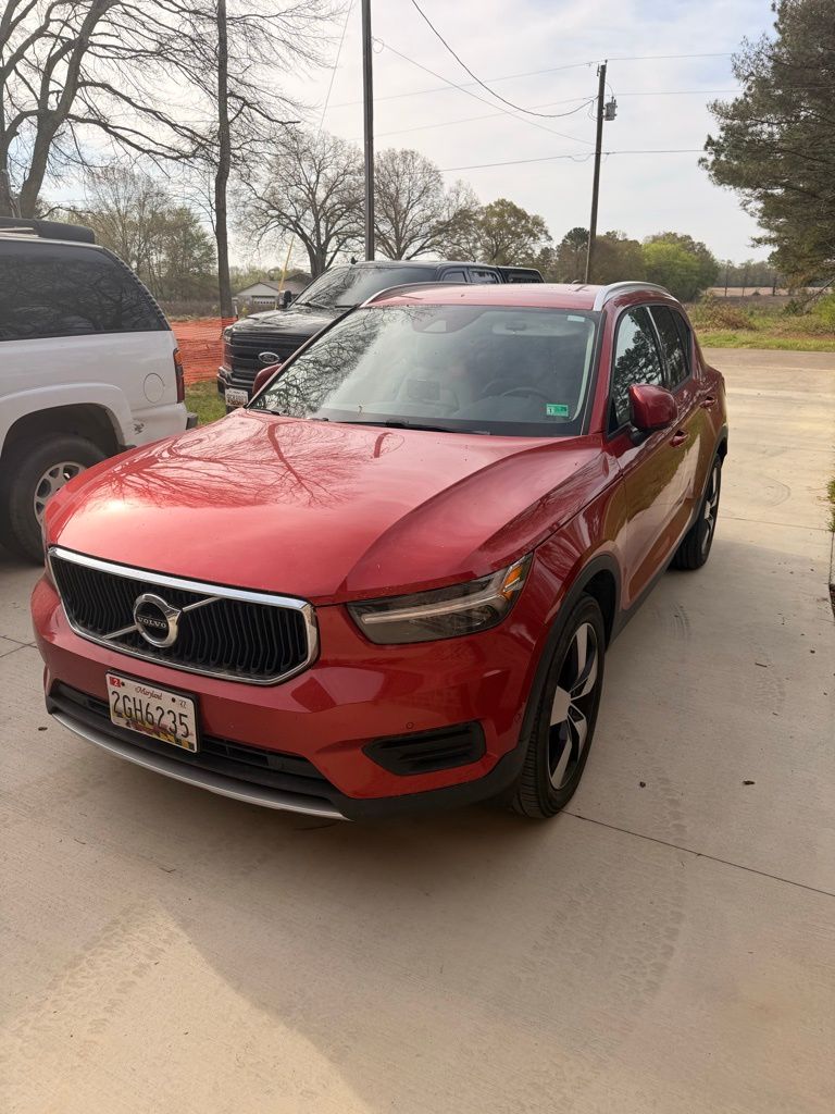2019 Volvo XC40 Momentum Fusion Red Metallic Momentum FWD Automatic with Geartronic 2.0L I4 4-Wheel Disc Brakes, 8 Speakers, ABS brakes, Air Conditioning, Alloy wheels, AM/FM radio: SiriusXM, Anti-whiplash front head restraints, Apple CarPlay/Android Auto, Auto High-beam Headlights, Automatic temperature control, Brake assist, Bumpers: body-color, Delay-off headlights, Driver door bin, Driver vanity mirror, Dual front impact airbags, Dual front side impact airbags, Electronic Stability Control, Emergency communication system: Volvo On-Call, Four wheel independent suspension, Front anti-roll bar, Front Bucket Seats, Front Center Armrest, Front Comfort Seats, Front reading lights, Fully automatic headlights, Heated door mirrors, Illuminated entry, Keyless Entry w/Handsfree Tailgate Opening, Knee airbag, Leather Seating Surfaces, Leather Shift Knob, Leather steering wheel, Low tire pressure warning, Memory seat, Occupant sensing airbag, Outside temperature display, Overhead airbag, Panic alarm, Passenger door bin, Passenger vanity mirror, Power door mirrors, Power driver seat, Power Liftgate, Power steering, Power windows, Premium audio system: Sensus Connect, Radio data system, Radio: AM/FM/HD, Rain sensing wipers, Rear anti-roll bar, Rear fog lights, Rear reading lights, Rear seat center armrest, Rear window defroster, Rear window wiper, Remote keyless entry, Roof rack: rails only, Security system, Speed control, Speed-sensing steering, Split folding rear seat, Spoiler, Steering wheel mounted audio controls, Tachometer, Telescoping steering wheel, Tilt steering wheel, Traction control, Trip computer, Turn signal indicator mirrors, Variably intermittent wipers, Wheels: 18" 5-Spoke Silver Alloy, Wheels: 19" 5-Spoke Black Diamond Cut Alloy.